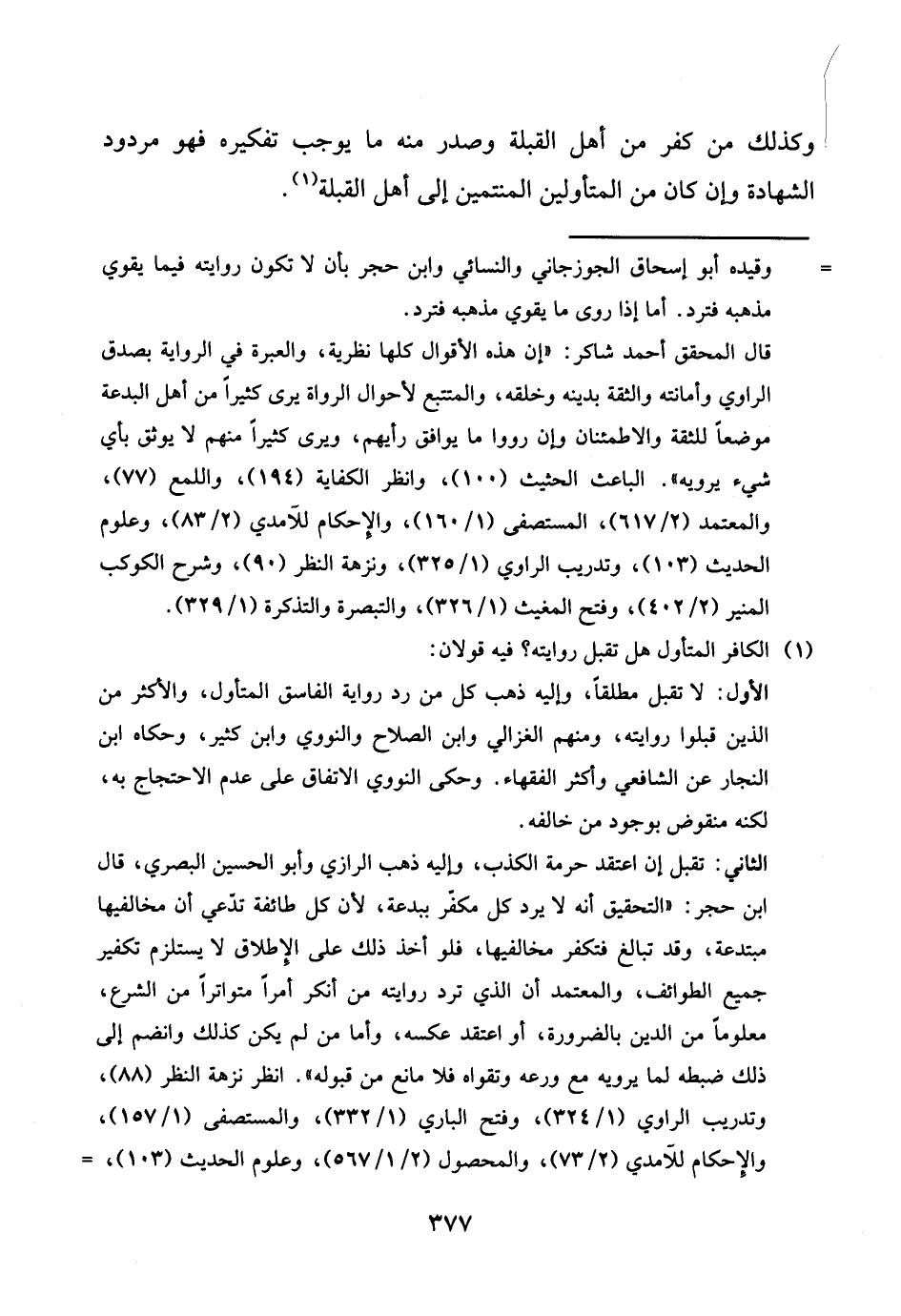 وَكَذَلِكَ من كفر من أهل الْقبْلَة وَصدر مِنْهُ مَا يُوجب تفكيره فَهُوَ مَرْدُود الشَّهَادَة وَإِن كَانَ من المتأولين المنتمين إِلَى أهل الْقبْلَة