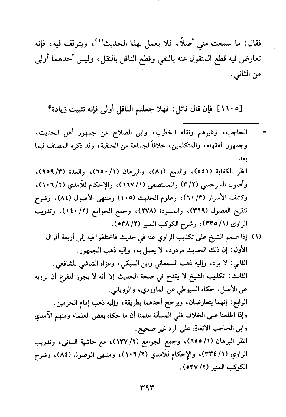 [1105] فَإِن قَالَ قَائِل: فَهَلا جعلتم النَّاقِل أولى فَإِنَّهُ تثبيت زِيَادَة؟