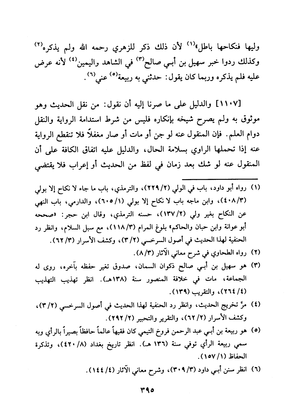 [1107] وَالدَّلِيل على مَا صرنا إِلَيْهِ أَن نقُول: من نقل الحَدِيث وَهُوَ موثوق بِهِ وَلم يُصَرح شَيْخه بإنكاره فَلَيْسَ من شَرط اسْتِدَامَة الرِّوَايَة وَالنَّقْل دوَام الْعلم. فَإِن الْمَنْقُول عَنهُ لَو جن أَو مَاتَ أَو صَار مغفلا فَلَا تَنْقَطِع الرِّوَايَة عَنهُ إِذا تحملهَا الرَّاوِي بسلامة الْحَال، وَالدَّلِيل عَلَيْهِ اتِّفَاق الكافة على أَن الْمَنْقُول عَنهُ لَو شكّ بعد زمَان فِي لفظ من الحَدِيث أَو إِعْرَاب فَلَا يَقْتَضِي