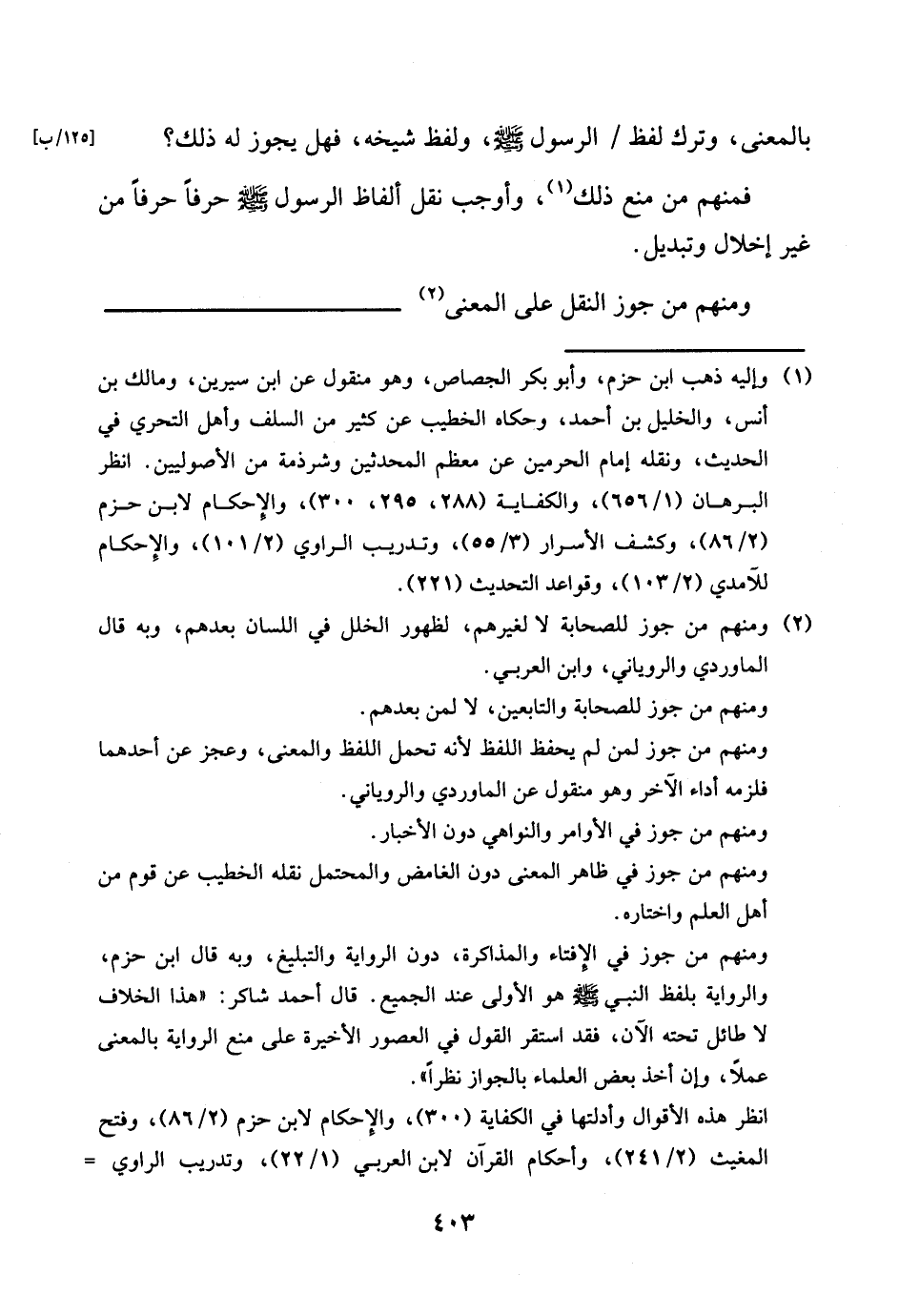 فَمنهمْ من منع ذَلِك، وَأوجب نقل أَلْفَاظ الرَّسُول صلى الله عَلَيْهِ وَسلم حرفا حرفا من غير إخلال وتبديل.