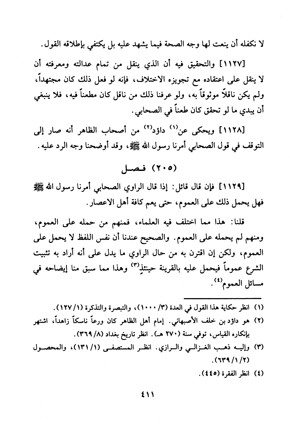 [1128] ويحكى عَن داؤد من اصحاب الظَّاهِر أَنه صَار إِلَى التَّوَقُّف فِي قَول الصَّحَابِيّ أمرنَا رَسُول الله صلى الله عَلَيْهِ وَسلم، وَقد أوضحنا وَجه الرَّد عَلَيْهِ.