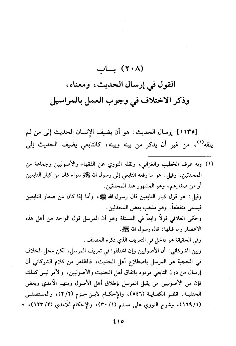 (208) بَاب القَوْل فِي إرْسَال الحَدِيث، وَمَعْنَاهُ، وَذكر الِاخْتِلَاف فِي وجوب الْعَمَل بالمراسيل
