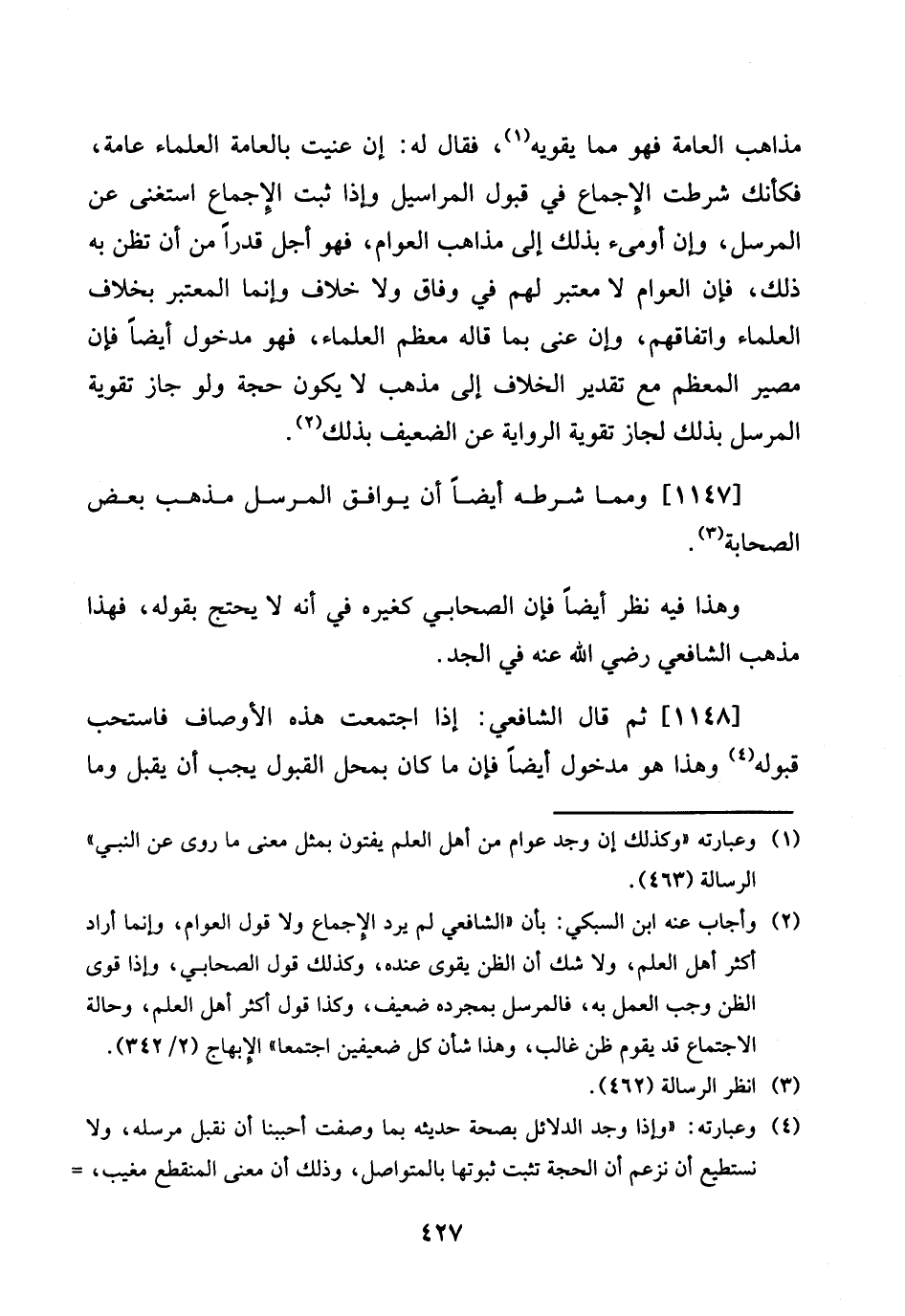 [1147] وَمِمَّا شَرطه ايضا أَن يُوَافق الْمُرْسل مَذْهَب بعض الصَّحَابَة.