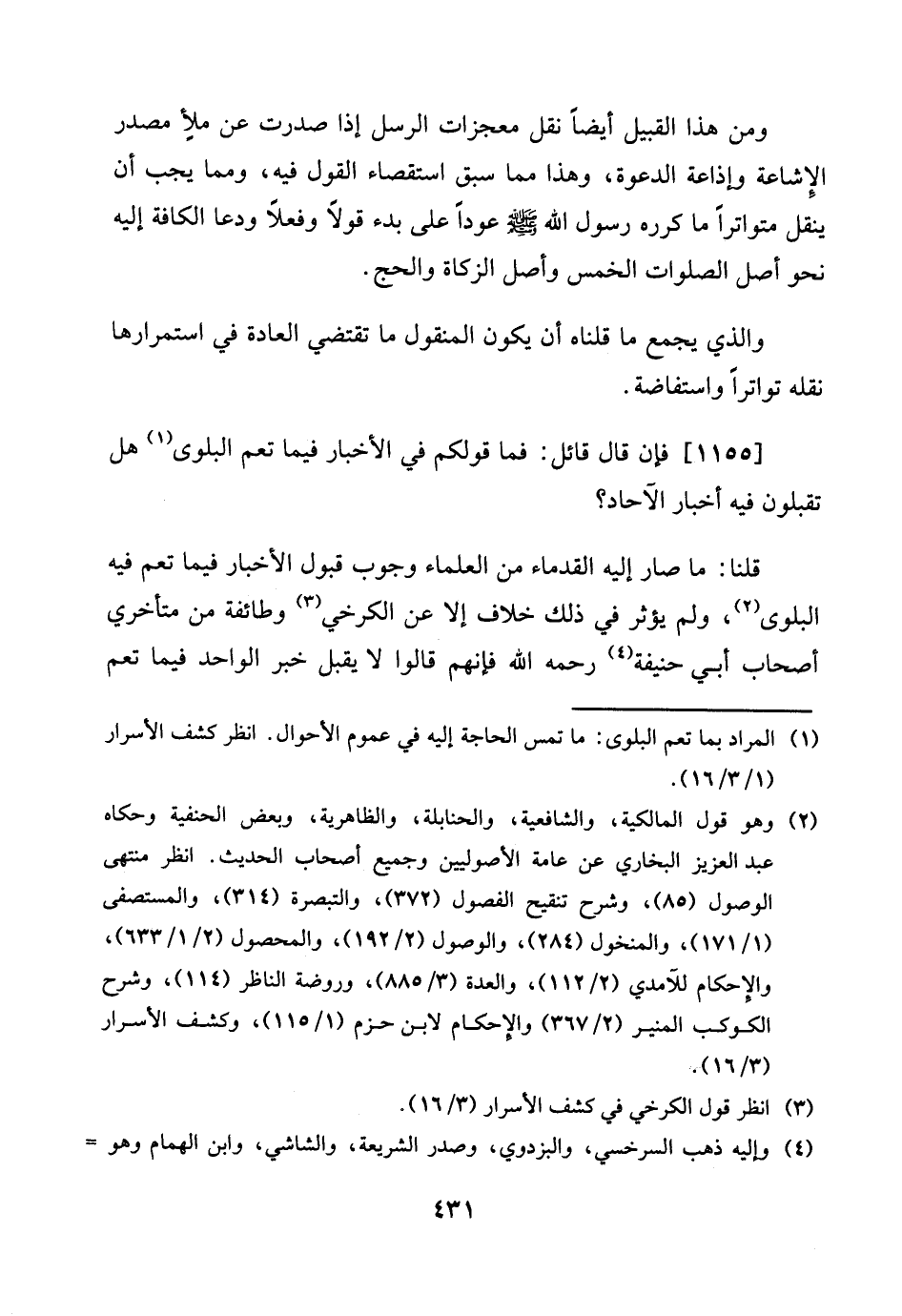 [1155] فَإِن قَالَ قَائِل: فَمَا قَوْلكُم فِي الْأَخْبَار فِيمَا تعم الْبلوى هَل تقبلون فِيهِ أَخْبَار الْآحَاد؟