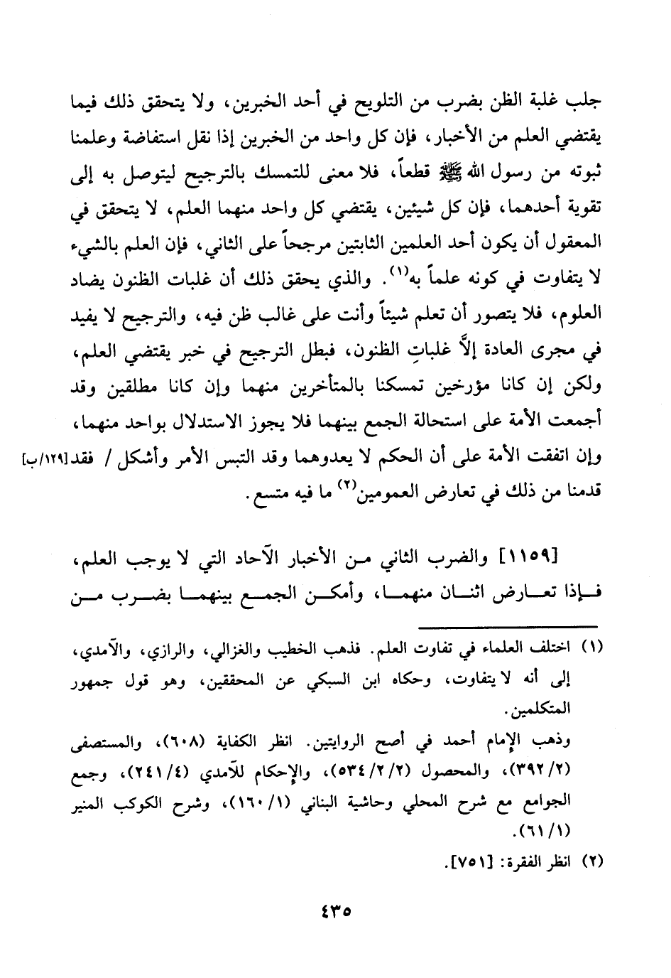 [1159] وَالضَّرْب الثَّانِي من الْأَخْبَار الْآحَاد الَّتِي لَا يُوجب الْعلم، فَإِذا تعَارض اثْنَان مِنْهُمَا، وَأمكن الْجمع بَينهمَا بِضَرْب من