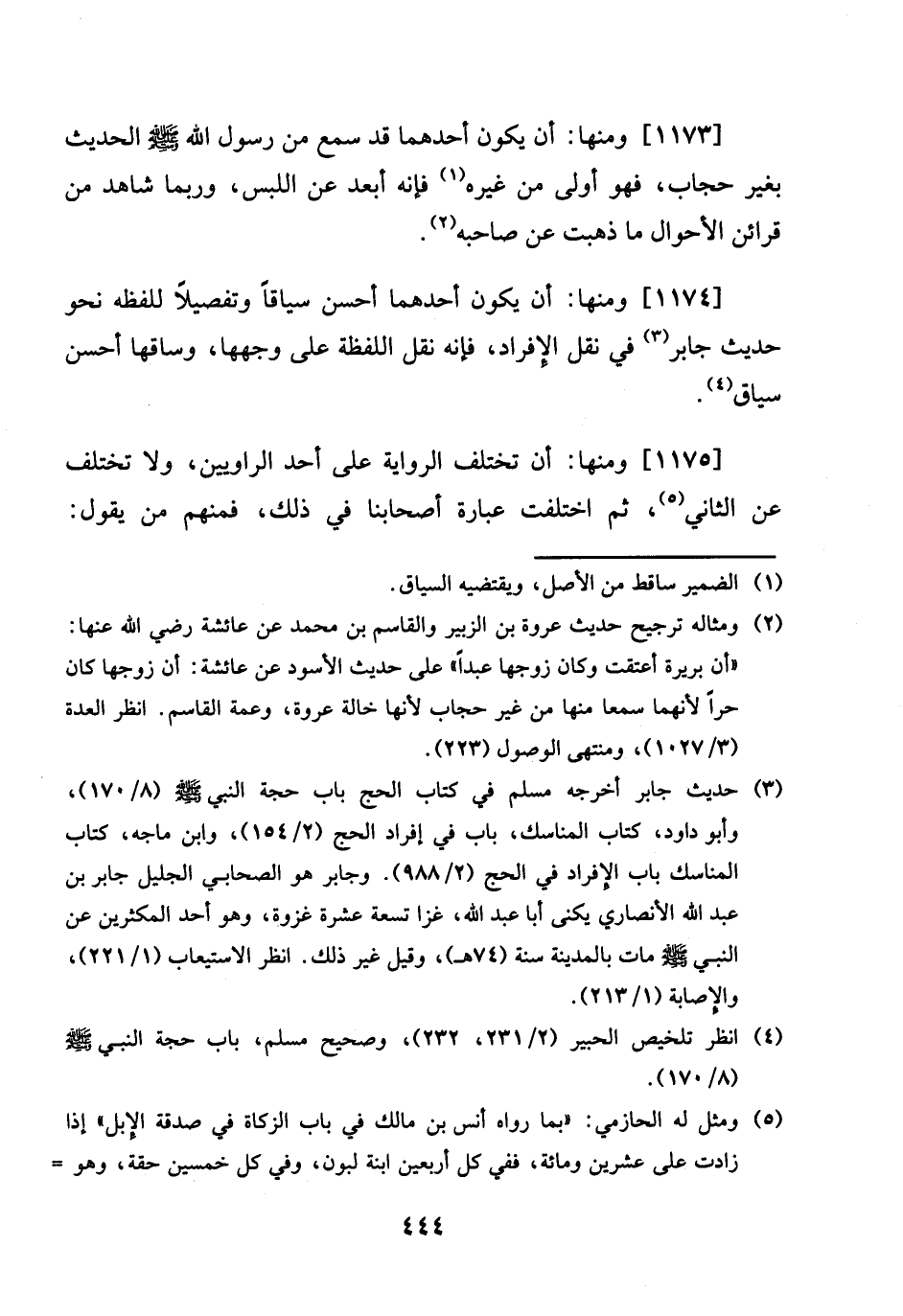 [1174] وَمِنْهَا: ان يكون أَحدهمَا أحسن سياقا وتفصيلا للفظه نَحْو حَدِيث جَابر فِي نقل االإفراد، فَإِنَّهُ نقل اللَّفْظَة على وَجههَا، وساقها أحسن سِيَاق.