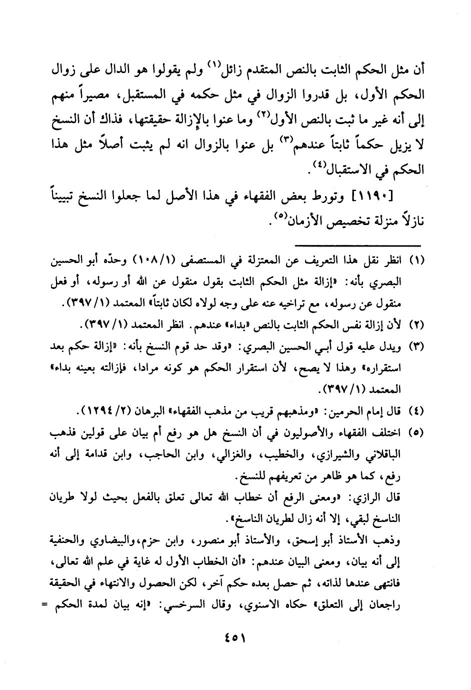 [1190] وتورط بعض الْفُقَهَاء فِي هَذَا الأَصْل لما جعلُوا النّسخ تبيينا نازلا منزلَة تَخْصِيص الْأَزْمَان.