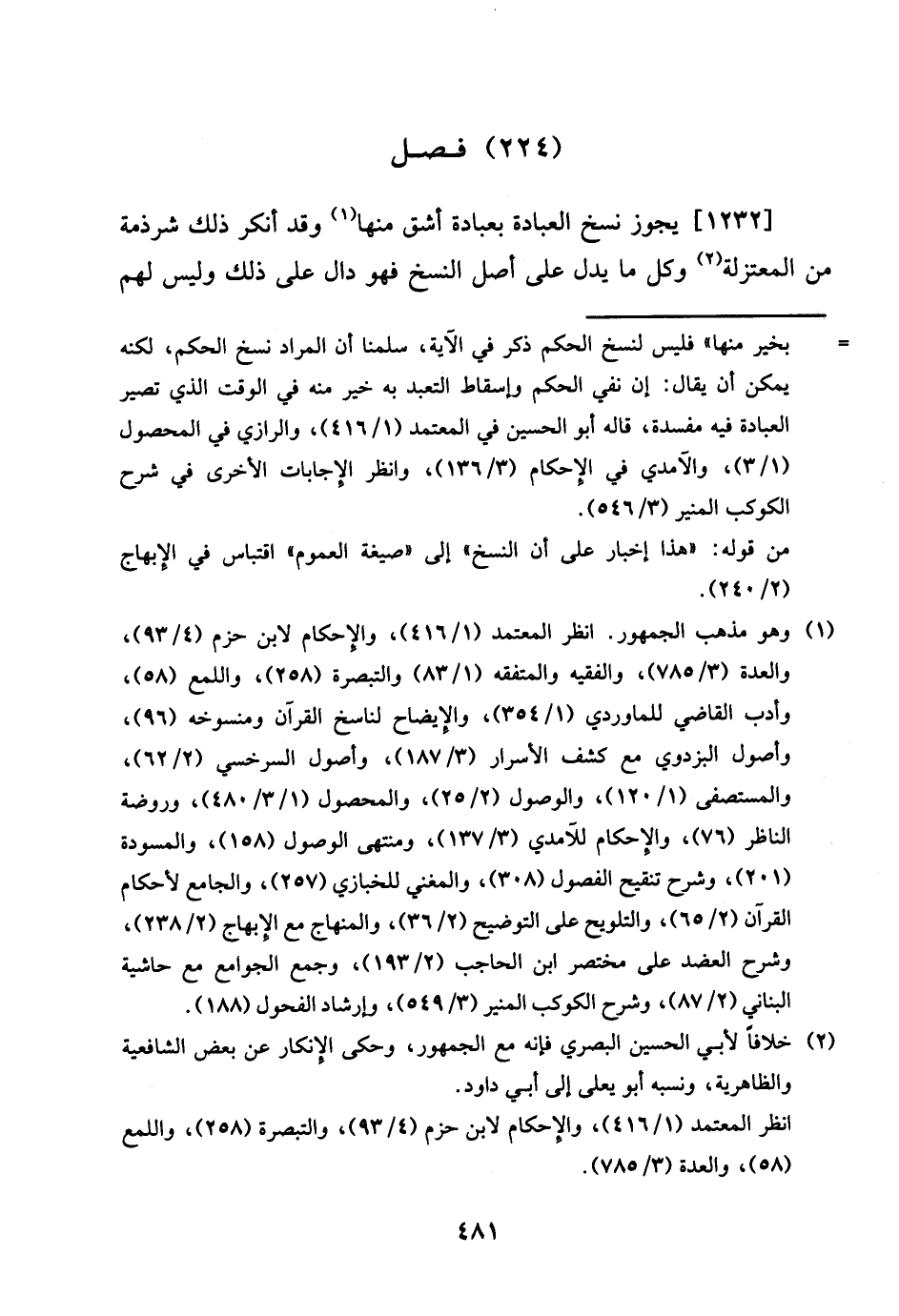 [1232] يجوز نسخ الْعِبَادَة بِعبَادة أشق مِنْهَا وَقد أنكر ذَلِك شرذمة من الْمُعْتَزلَة وكل مَا يدل على اصل النّسخ فَهُوَ دَال على ذَلِك وَلَيْسَ لَهُم