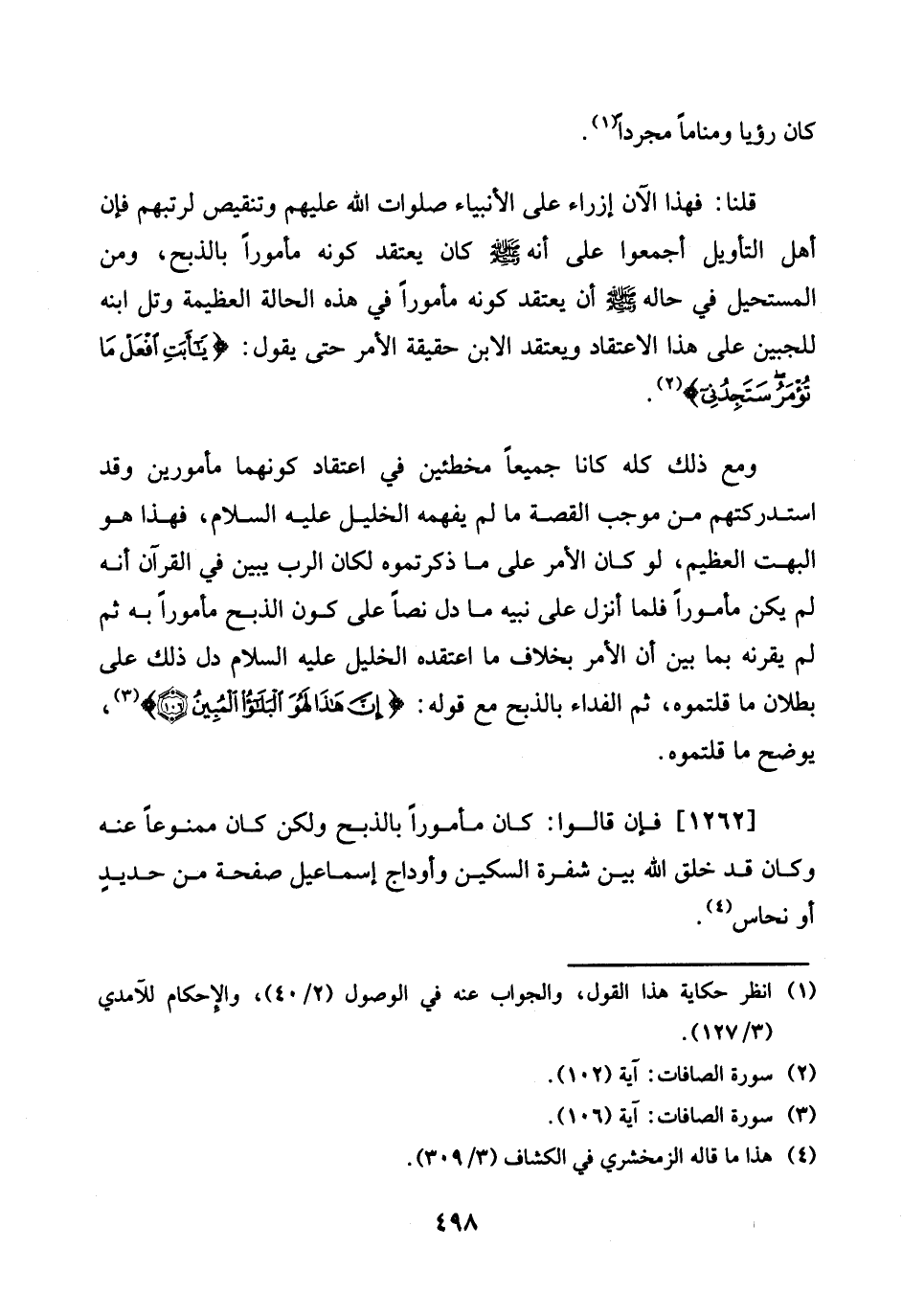 [1262] فَإِن قَالُوا: كَانَ مَأْمُورا بِالذبْحِ وَلَكِن كَانَ مَمْنُوعًا عَنهُ وَكَانَ قد خلق الله بَين شفرة السكين وأوداج إِسْمَاعِيل صفحة من حَدِيد أَو نُحَاس.