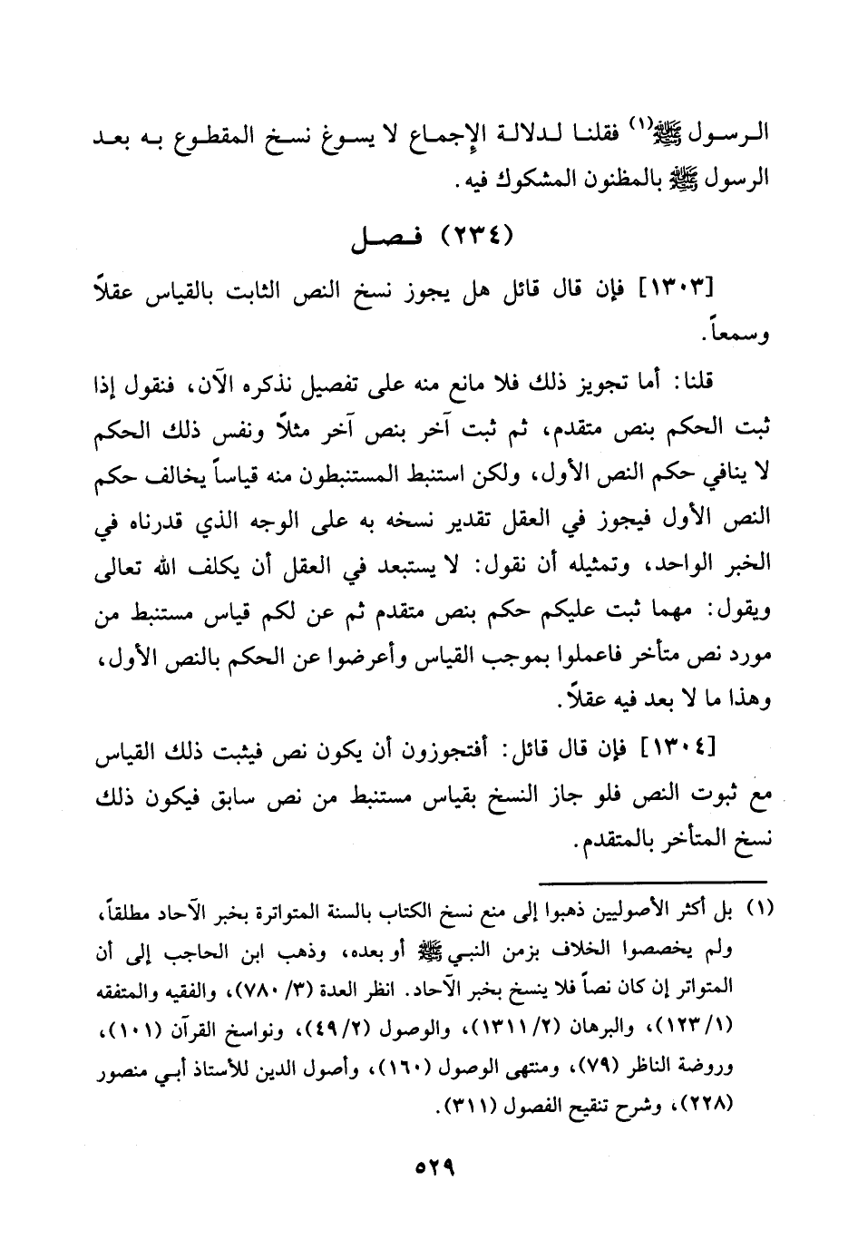 [1303] فَإِن قَالَ قَائِل هَل يجوز نسخ النَّص الثَّابِت بِالْقِيَاسِ عقلا وسمعا.