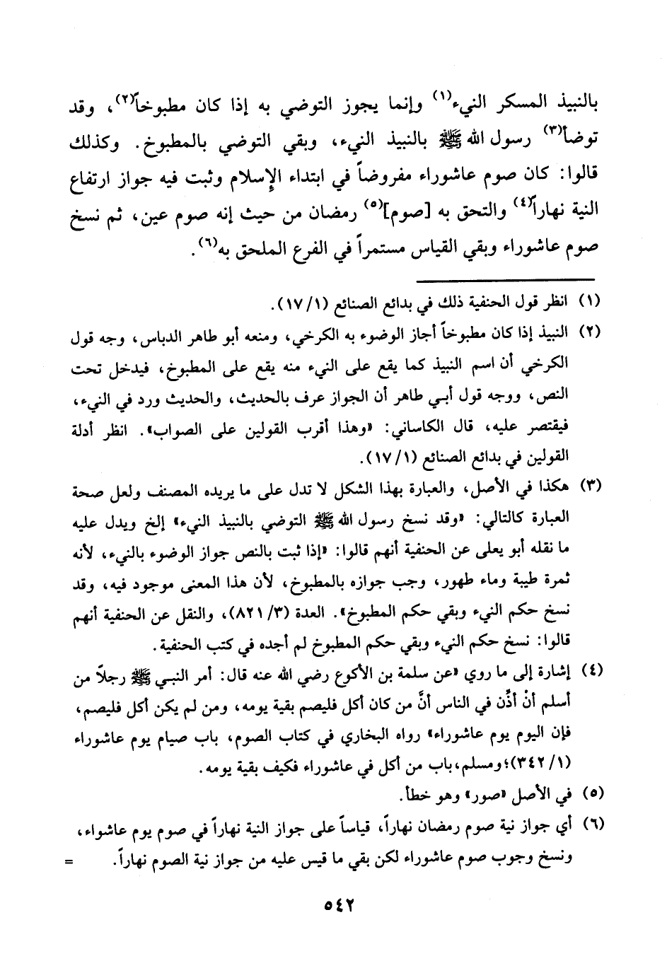 بالنبيذ الْمُسكر النيء وَإِنَّمَا يجوز التوضي بِهِ إِذا كَانَ مطبوخا وَقد تَوَضَّأ رَسُول الله صلى الله عَلَيْهِ وَسلم بالنبيذ النيء، وَبَقِي التوضي بالمطبوخ. وَكَذَلِكَ قَالُوا: كَانَ صَوْم عَاشُورَاء مَفْرُوضًا فِي ابْتِدَاء الْإِسْلَام وَثَبت فِيهِ جَوَاز ارْتِفَاع النِّيَّة نَهَارا والتحق بِهِ [صَوْم] رَمَضَان من حَيْثُ إِنَّه صَوْم عين، ثمَّ نسخ صَوْم عاشرواء وَبَقِي الْقيَاس مستمرا فِي الْفَرْع الملحق بِهِ.