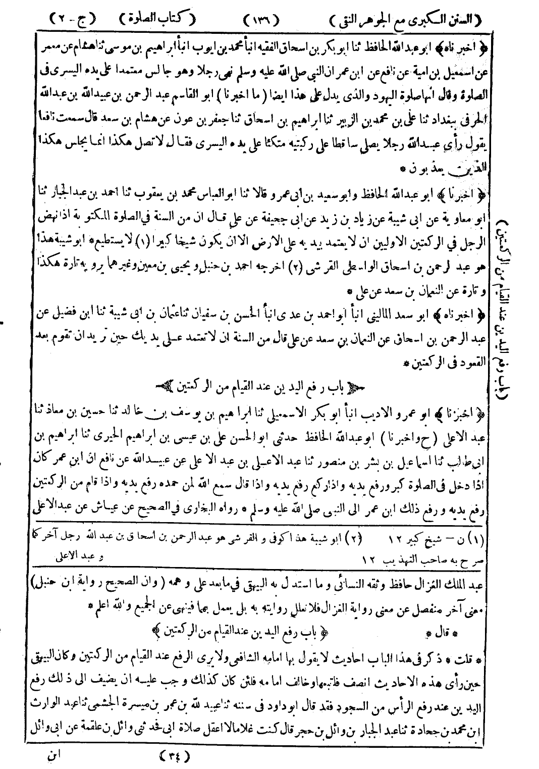 عبد الملك الغزال حافظ وثقه النسائي وما استدل به البيهقى في ما بعد على وهمه (وان الصحيح رواية ابن حنبل) معنى آخر منفصل عن معنى رواية الغزال فلا نعلل روايته به بل يعمل بهما فينهى عن الجميع والله اعلم * * قال * (باب رفع اليدين عند القيام من الركعتين) * قلت * ذكر في هذا الباب احاديث لا يقول بها امامه الشافعي ولا يرى الرفع عند القيام من الركعتين وكان البيهقى حين رأى هذه الاحاديث انصف فاتبعها وخالف امامه فلئن كان كذلك وجب عليه ان يضيف إلى ذلك رفع اليدين عند رفع الرأس من السجود فقد قال أبو داود في سننه ثنا عبيد الله بن عمر بن ميسرة الجشمى ثنا عبد الوارث ابن محمد بن جحادة ثنا عبد الجبار بن وائل بن حجر قال كنت غلاما لا اعقل صلاة ابى فحدثني وائل بن علقمة عن ابى وائل