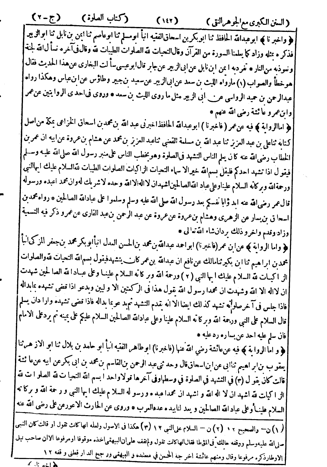 (1) ن والصحيح 12 (2) ن السلام على النبي 12 (3) هكذا في الاصول ولعله انها كانت تقول أو قالت كان النبي صلى الله عليه وسلم ووقفه مالك في المؤطا فقال انها كانت تقول ولم نقف على ان البيهقى اخذه موقوفا أو مرفوعا الا ان صاحب نيل الاوطار ذكره مرفوعا وقال ومنهم عائشة اخرجه الحسن في مسنده والبيهقي ورجح الدارقطني وقفه 12