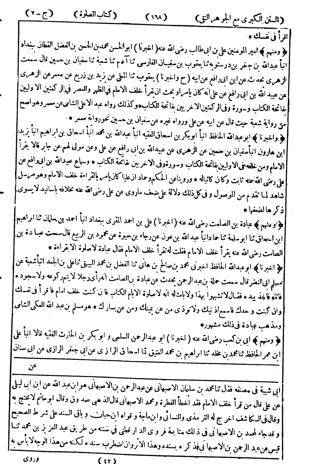 ابى شيبة في مصنفه فقال ثنا محمد بن سليمان الاصبهاني عن عبد الرحمن بن الاصبهاني هو ابن عبد الله عن ابن ابى ليلى عن على قال من قرأ خلف الامام فقد اخطأ الفطرة ومحمد الاصبهاني قال الذهبي صدوق وقال أبو حاتم لا يحتج به وقال في الكاشف اخرج له الترمذي والنسائي وابن ماجة وقواه ابن حبان وباقى السند على شرط الصحيح وقد جاء لمحمد بن الاصبهاني في ذلك متابعة فروى الدارقطني في سننه من طريق عبد العزيز بن محمد ثنا قيس عن عبد الرحمن بن الاصبهاني فذكره بسنده وهذا الاثر وان اضطرب سنده لكنه من هذا الوجه لا بأس به