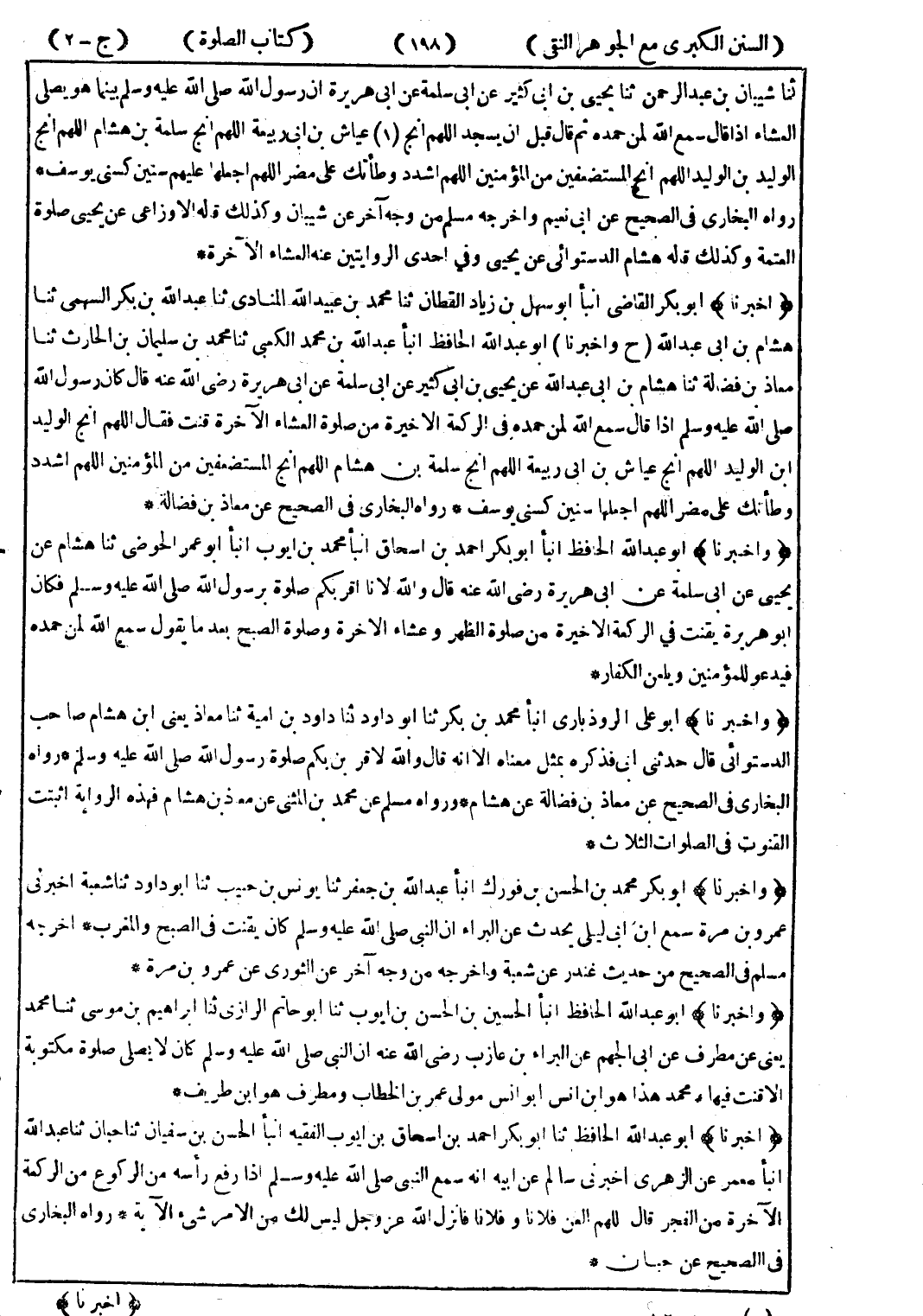 (وأخبرنا) أبو عبد الله الحافظ انبأ الحسين بن الحسن بن ايوب ثنا أبو حاتم الرازي ثنا ابراهيم بن موسى ثنا محمد يعنى عن مطرف عن ابى الجهم عن البراء بن عازب رضى الله عنه ان النبي صلى الله عليه وسلم كان لا يصلى صلوة مكتوبة الا قنت فيها ومحمد هذا هو ابن انس أبو انس مولى عمر بن الخطاب ومطرف هو ابن طريف *