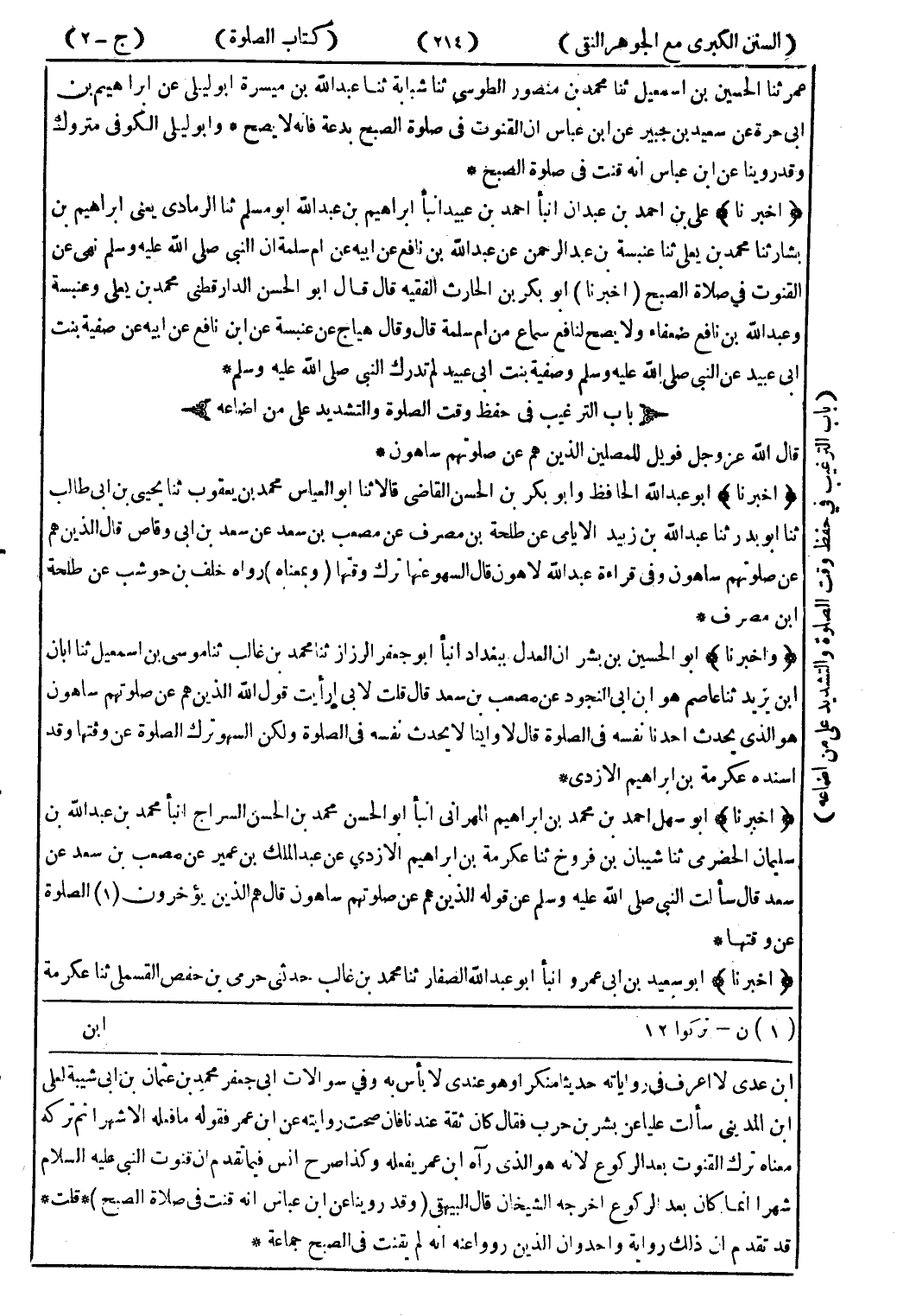 ابن عدى لا اعرف في رواياته حديثا منكر أو هو عندي لا بأس به وفي سوالات ابى جعفر محمد بن عثمان بن ابى شيبة لعلى ابن المدينى سألت عليا عن بشر بن حرب فقال كان ثقة عند نا فان صحت روايته عن ابن عمر فقوله ما فعله الا شهرا ثم تركه معناه ترك القنوت بعد الركوع لانه هو الذى رآه ابن عمر يفعله وكذا صرح انس فيما تقدم ان قنوت النبي عليه السلام شهرا انما كان بعد الركوع اخرجه الشيخان قال البيهقى (وقد روينا عن ابن عباس انه قنت في صلاة الصبح) * قلت * قد تقدم ان ذلك رواية واحد وان الذين رووا عنه انه لم يقنت في الصبح جماعة *