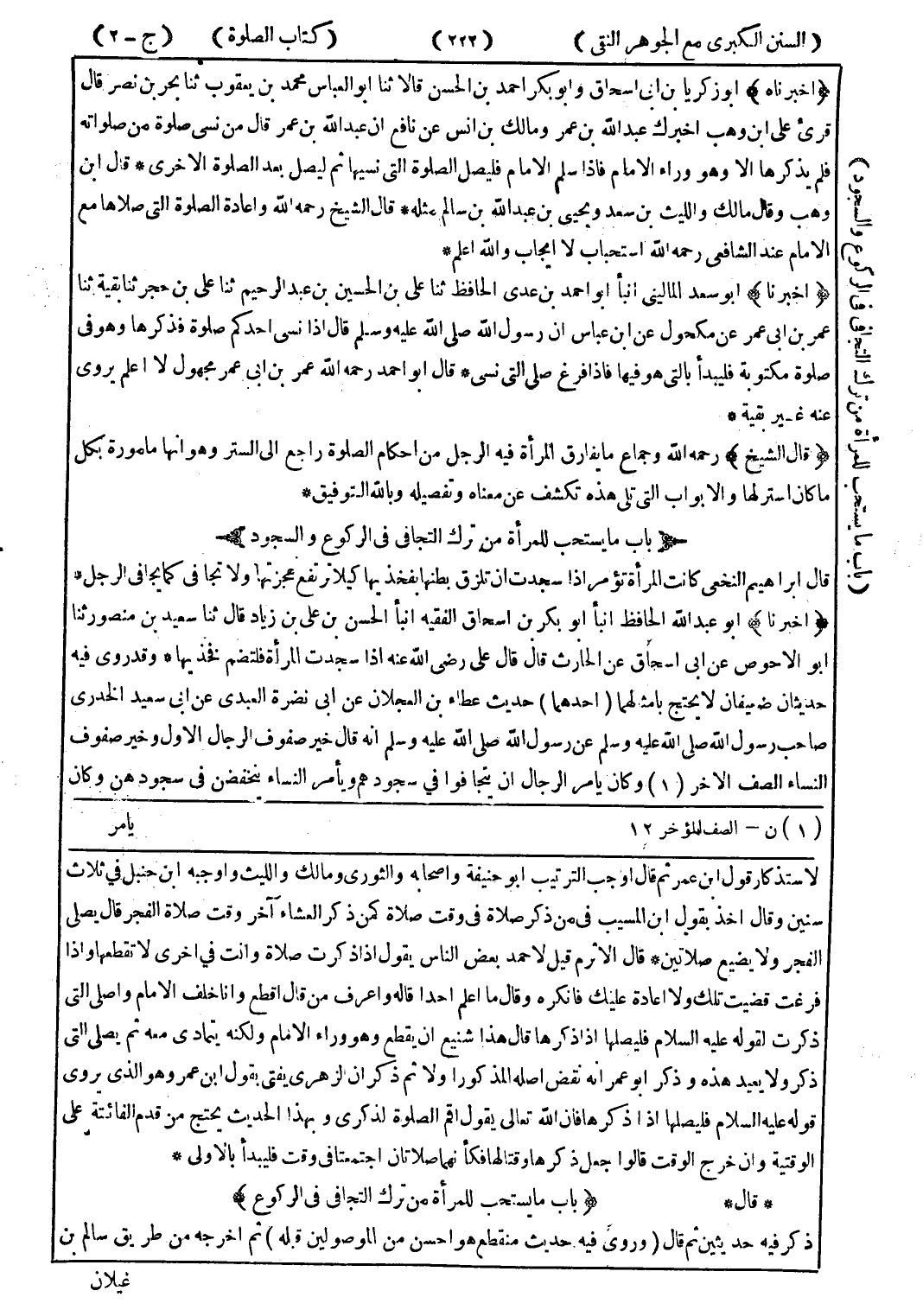 لاستذكار قول ابن عمر ثم قال اوجب الترتيب أبو حنيفة واصحابه والثوري ومالك والليث واوجبه ابن حنبل في ثلاث سنين وقال اخذ بقول ابن المسيب في من ذكر صلاة في وقت صلاة كمن ذكر العشاء آخر وقت صلاة الفجر قال يصلى الفجر ولا يضيع صلاتين * قال الا ثرم قيل لاحمد بعض الناس يقول إذا ذكرت صلاة وانت في اخرى لا تقطعها وإذا فرغت قضيت تلك ولا اعادة عليك فانكره وقال ما اعلم احدا قاله واعرف من قال اقطع وانا خلف الامام واصلي التى ذكرت لقوله عليه السلام فليصلها إذا ذكرها قال هذا شنيع ان يقطع وهو وراء الامام ولكنه يتمادى معه ثم يصلى التى ذكر ولا يعيد هذه وذكر أبو عمر انه نقض اصله المذكور اولا ثم ذكران الزهري يفتى بقول ابن عمر وهو الذى يروى قوله عليه السلام فليصلها إذا ذكرها فان الله تعالى يقول اقم الصلوة لذكرى وبهذا الحديث يحتج من قدم الفائتة على الوقتية وان خرج الوقت قالوا جعل ذكرها وقتالها فكأنهما صلاتان اجتمعتا في وقت فليبدأ بالاولى * * قال * (باب ما يستحب للمرأة من ترك التجافي في الركوع) ذكر فيه حديثين ثم قال (وروى فيه حديث منقطع هو احسن من الموصولين قبله) ثم اخرجه من طريق سالم بن