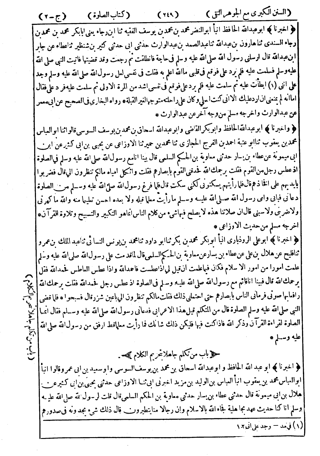 (أخبرنا) أبو عبد الله الحافظ انبأ أبو النضر محمد بن محمد بن يوسف الفقيه ثنا ابن رجاء يعنى ابا بكر محمد بن محمد بن رجاء السندي ثنا هارون بن عبد الله ثنا عبد الصمد بن عبد الوارث حدثنى ابى حدثنى كثير بن شنظير ثنا عطاء عن جابر ابن عبد الله قال ارسلني رسول الله صلى الله عليه وسلم في حاجة فانطلقت ثم رجعت وقد قضيتها فاتيت النبي صلى الله عليه وسلم فسلمت عليه فلم يرد على فوقع في قلبى ما الله اعلم به فقلت في نفسي لعلل رسول الله صلى الله عليه وسلم وجد على اننى (1) ابطأت عليه ثم سلمت عليه فلم يرد على فوقع في نفسي اشد من المرة الاولى ثم سلمت عليه فرد على فقال اما انه لم يمنعنى ان ارد عليك الا انى كنت اصلي وكان على راحلته متوجها لغير القبلة * رواه البخاري في الصحيح عن ابى معمر عن عبد الوارث واخرجه مسلم من وجه آخر عن عبد الوارث *