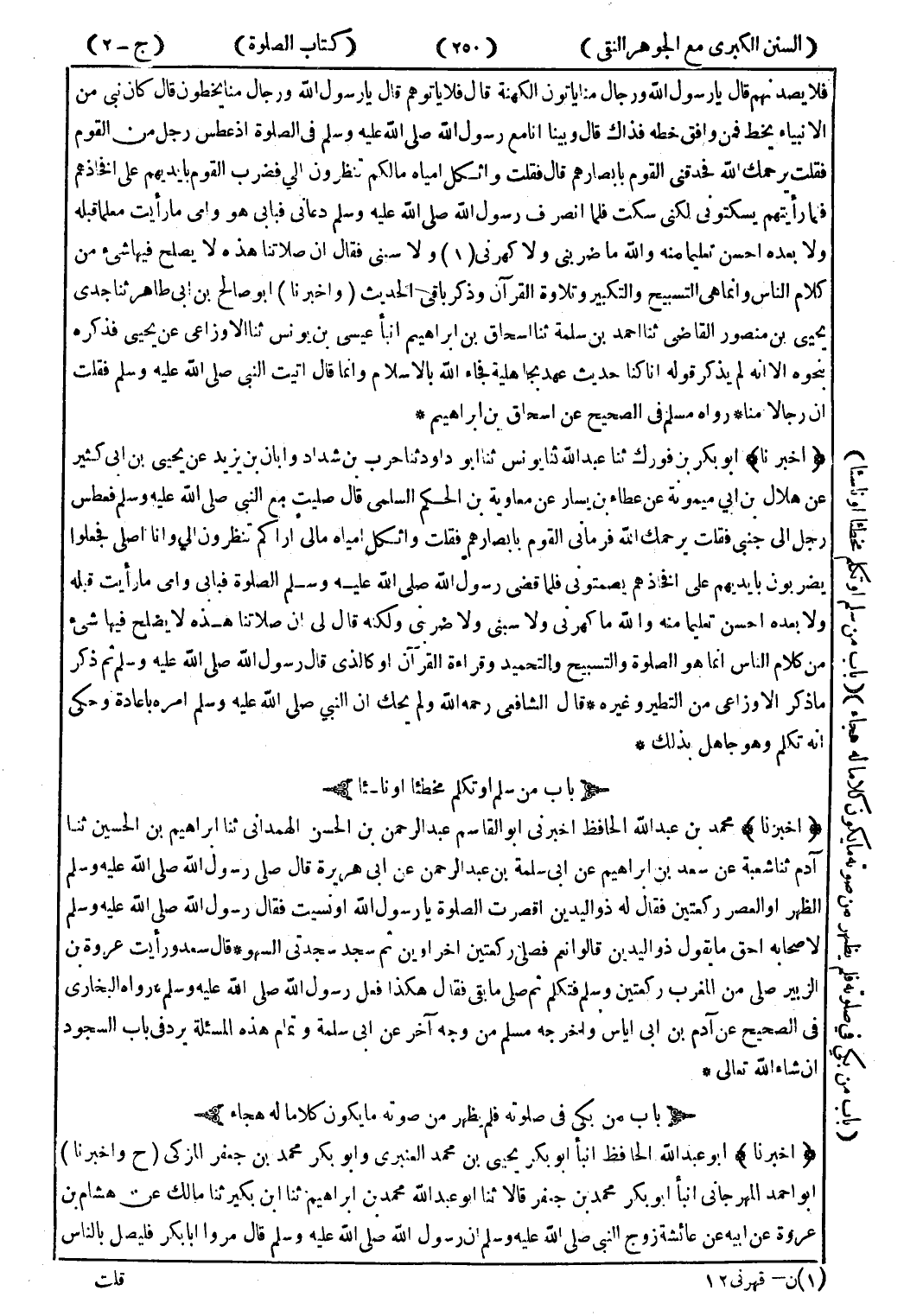 فما رأيتهم يسكتوني لكنى سكت فلما انصرف رسول الله صلى الله عليه وسلم دعاني فبابى هو وامى ما رأيت معلما قبله ولا بعده احسن تعليما منه والله ما ضربني ولا كهرنى (1) ولا سبني فقال ان صلاتنا هذه لا يصلح فيها شئ من كلام الناس وانما هي التسبيح والتبكير وتلاوة القرآن وذكر باقى الحديث
