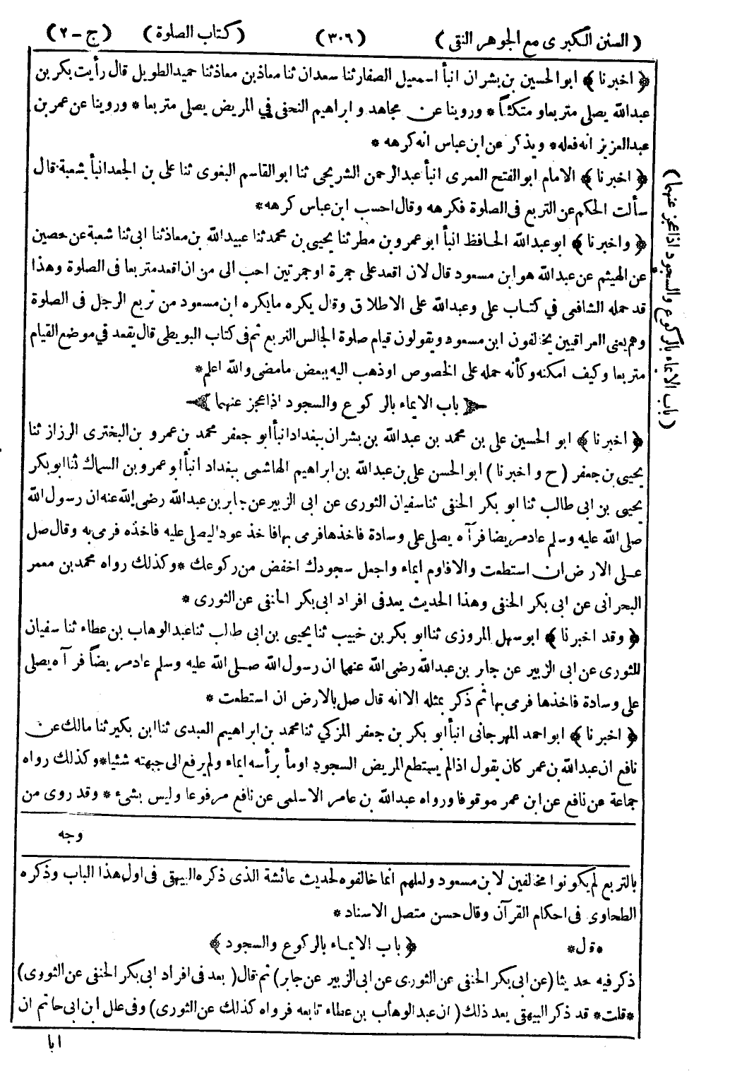 بالتربع لم يكونوا مخالفين لابن مسعود ولعلهم انما خالفوه لحديث عائشة الذى ذكره البيهقى في اول هذا الباب وذكره الطحاوي في احكام القرآن وقال حسن متصل الاسناد * * قال * (باب الايماء بالركوع والسجود)