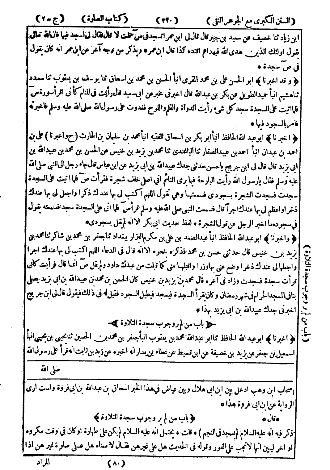 اصحاب ابن وهب ادخل بين ابن ابى هلال وبين عياض في هذا الخبر اسحاق بن عبد الله بن ابى فروة ولست ارى الرواية عن ابن ابى فروة هذا * * قال * (باب من لم ير وجوب سجدة التلاوة) ذكر فيه انه عليه السلام لم يسجد في النجم) * قلت * يحتمل انه عليه السلام لم يكن على طهارة أو كان في وقت مكروه أو اخر ليبين انها لا تجب على الفور وقوله في الحديث هل على غيرهن فقال لا معناه هل على صلوة غيرهن إذا