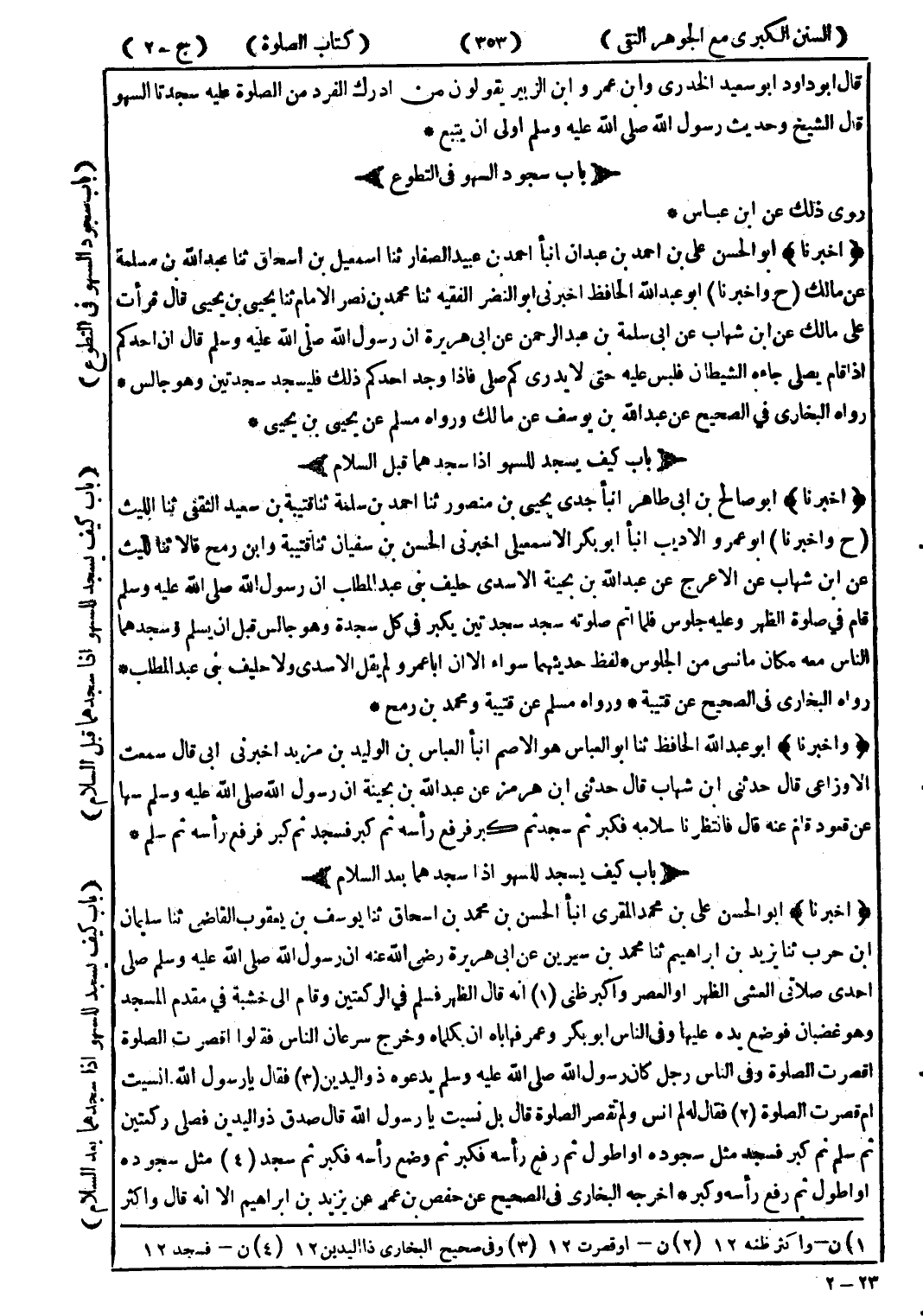 (1) ن واكثر اظنه 12 (2) ن أو قصرت 12 (3) وفى صحيح البخاري ذا اليدين 12 (4) ن فسجد 12