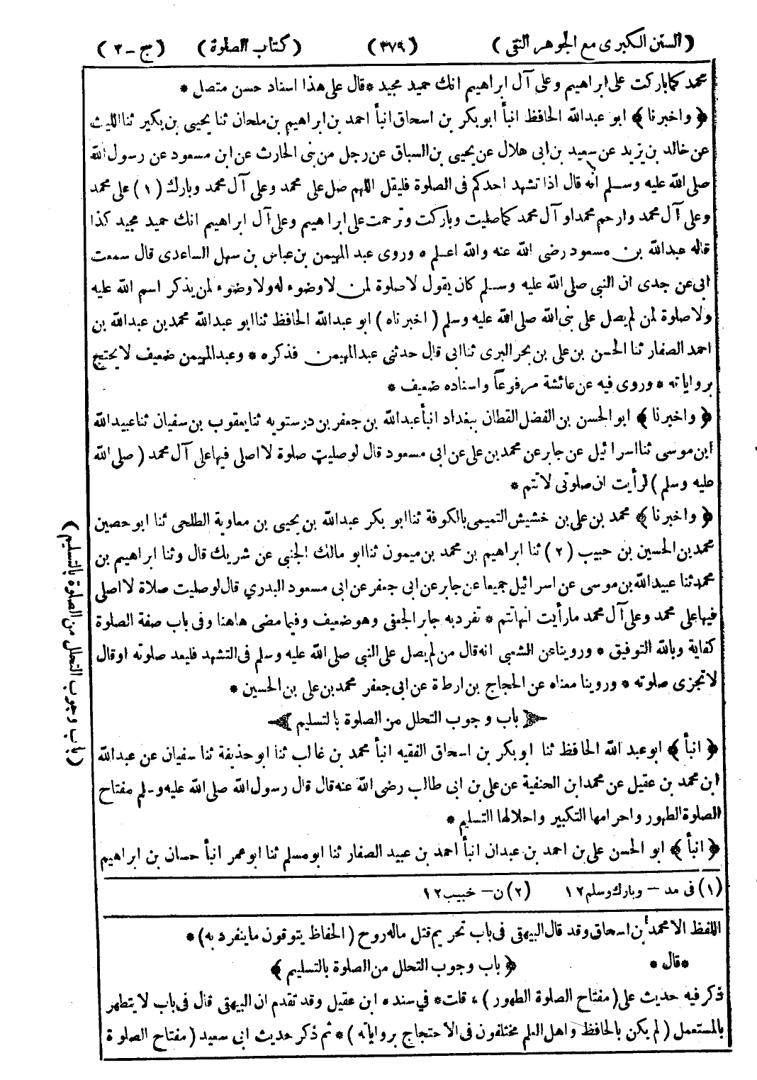 اللفظ الا محمد بن اسحاق وقد قال البيهقى في باب تحريم قتل ماله روح (الحفاظ يتوقون ما ينفرد به) * * قال * (باب وجوب التحلل من الصلوة بالتسليم) ذكر فيه حديث على (مفتاح الصلوة الطهور) * قلت * في سنده ابن عقيل وقد تقدم ان البيهقى قال في باب لا يتطهر بالمستعمل (لم يكن بالحافظ واهل العلم مختلفون في الاحتجاج برواياته) * ثم ذكر حديث ابى سعيد (مفتاح الصلوة