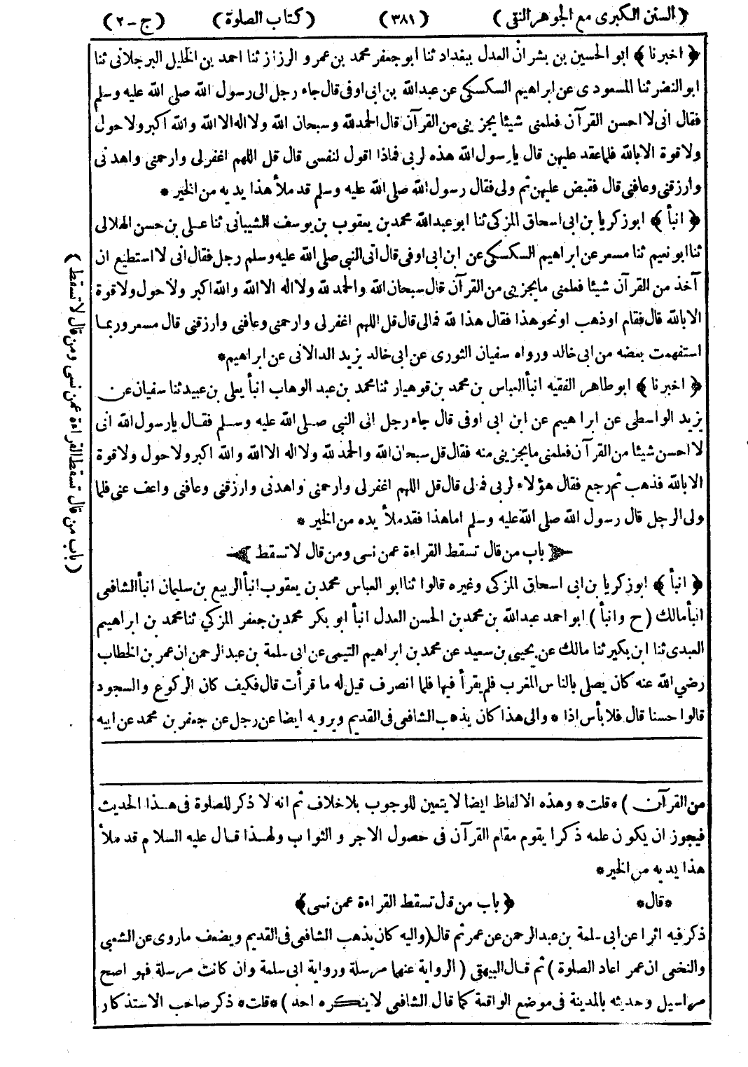 ذكر فيه اثرا عن ابى سلمة بن عبد الرحمن عن عمر ثم قال (واليه كان يذهب الشافعي في القديم ويضعف ما روى عن الشعبى والنخعي ان عمر اعاد الصلوة) ثم قال البيهقى (الرواية عنهما مرسلة ورواية ابى سلمة وان كانت مرسلة فهو اصح مراسيل وحديثه بالمدينة في موضع الواقعة كما قال الشافعي لا ينكره احد) * قلت * ذكر صاحب الاستذكار