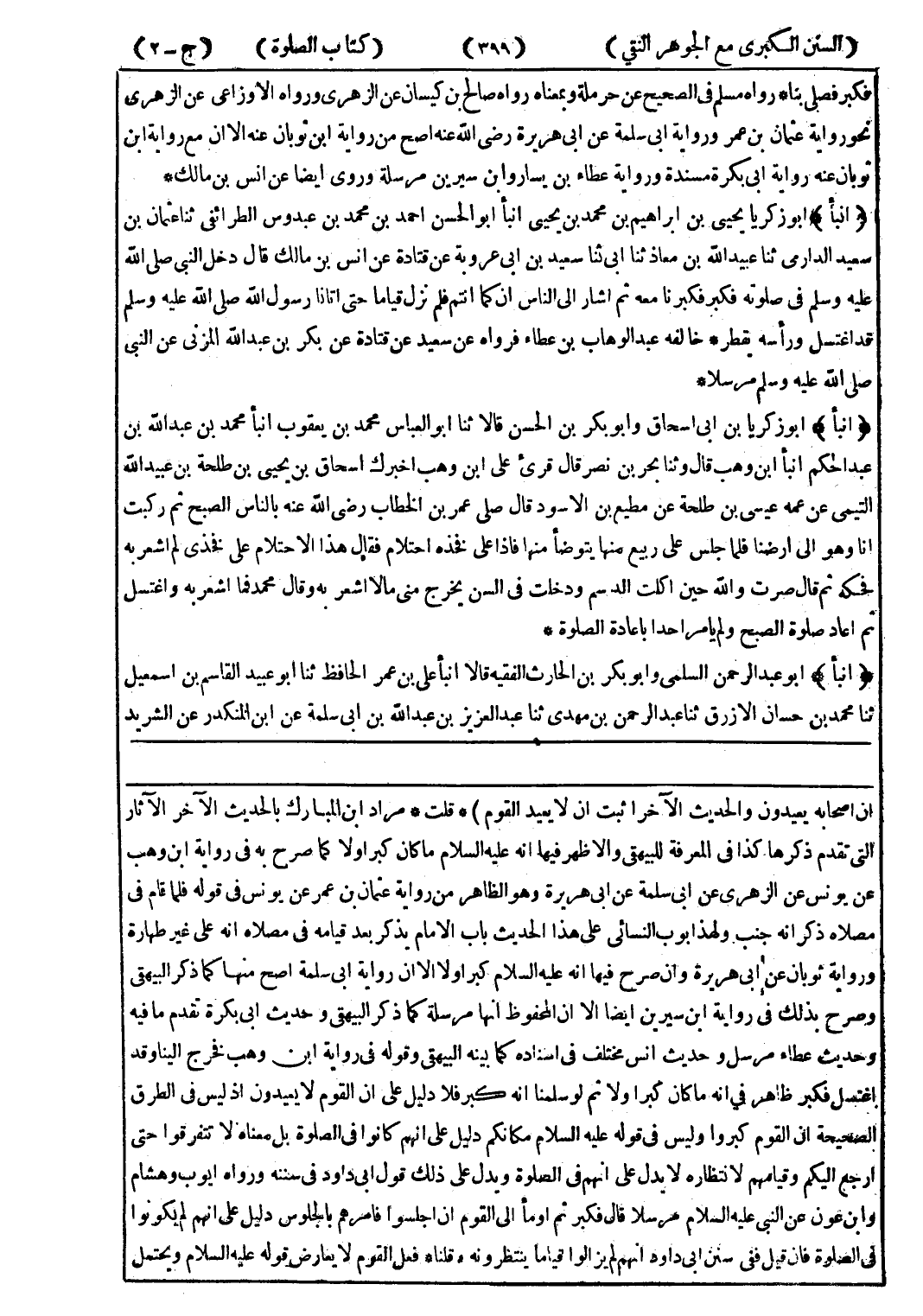 ان اصحابه يعيدون والحديث الآخر اثبت ان لا يعيد القوم) * قلت * مراد ابن المبارك بالحديث الآخر الآثار التى تقدم ذكرها كذا في المعرفة للبيهقي والاظهر فيها انه عليه السلام ما كان كبر اولا كما صرح به في رواية ابن وهب عن يونس عن الزهري عن ابى سلمة عن ابى هريرة وهو الظاهر من رواية عثمان بن عمر عن يونس في قوله فلما قام في مصلاه ذكر انه جنب ولهذ ابوب النسائي على هذا الحديث باب الامام يكذر بعد قيامه في مصلاه انه على غير طهارة ورواية ثوبان عن ابى هريرة وان صرح فيها انه عليه السلام كبر اولا الا ان رواية ابى سلمة اصح منها كما ذكر البيهقى وصرح بذلك في رواية ابن سيرين ايضا الا ان المحفوظ انها مرسلة كما ذكر البيهقى وحديث ابى بكرة تقدم ما فيه وحديث عطاء مرسل وحديث انس مختلف في اسناده كما بينه البيهقى وقوله في رواية ابن وهب فخرج الينا وقد اغتسل فكبر ظاهر في انه ما كان كبرا ولا ثم لو سلمنا انه كبر فلا دليل على ان القوم لا يعيدون إذ ليس في الطرق الصحيحة ان القوم كبروا وليس في قوله عليه السلام مكانكم دليل على انهم كانوا في الصلوة بل معناه لا تتفرقوا حتى ارجع اليكم وقيامهم لانتظاره لا يدل على انهم في الصلوة ويدل على ذلك قول ابى داود في سننه ورواه ايوب وهشام وابن عون عن النبي عليه السلام مرسلا قال فكبر ثم اومأ إلى القوم ان اجلسوا فامرهم بالجلوس دليل على انهم لم يكونوا في الصلوة فان قيل ففى سنن ابى داود انهم لم يزالوا قياما ينتظرونه * قلنا * فعل القوم لا يعارض قوله عليه السلام ويحتمل