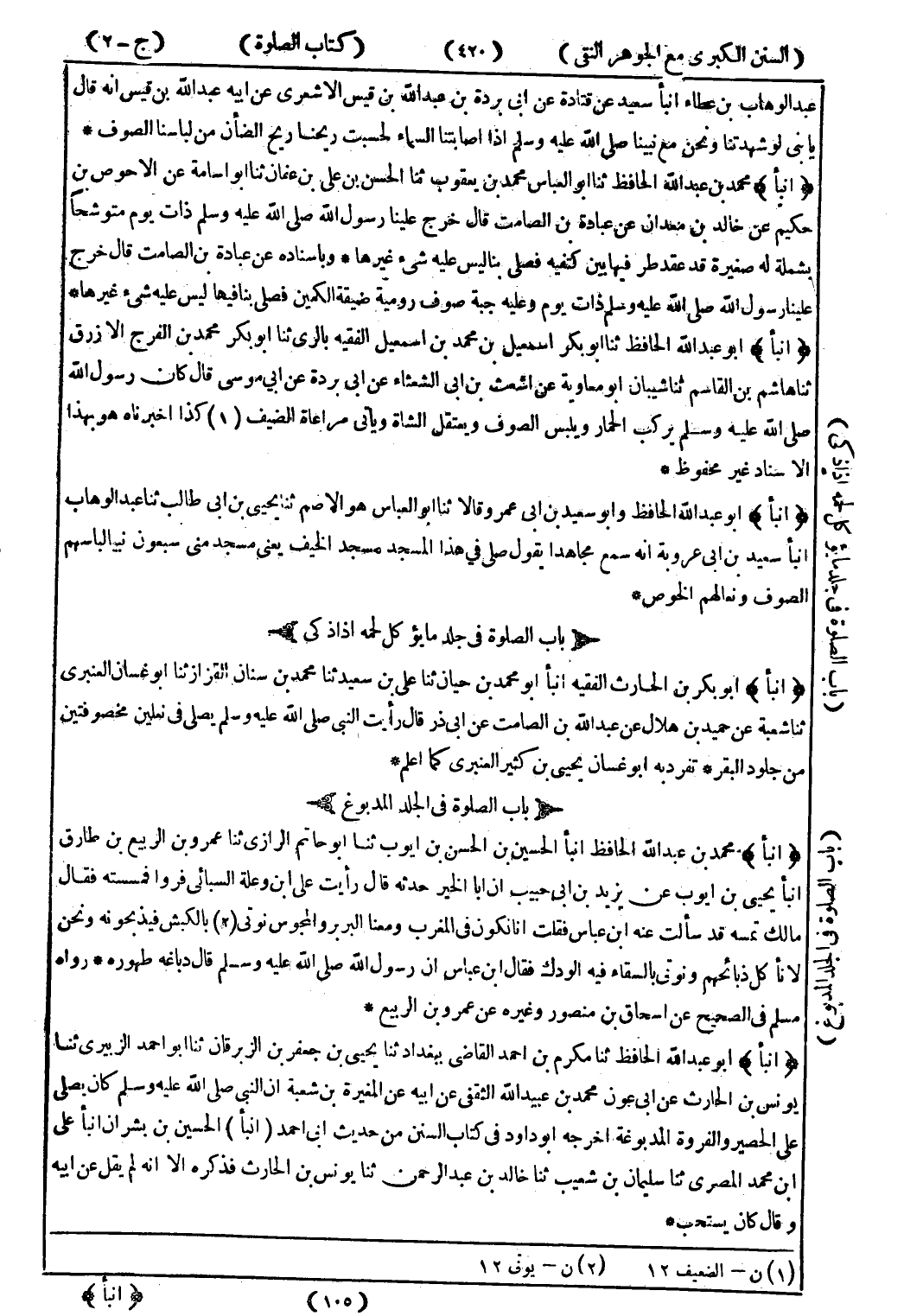(أنبأ) أبو بكر بن الحارث الفقيه انبأ أبو محمد بن حيان ثنا على بن سعيد ثنا محمد بن سنان القزاز ثنا أبو غسان العنبري ثنا شعبة عن حميد بن هلال عن عبد الله بن الصامت عن ابى ذر قال رأيت النبي صلى الله عليه وسلم يصلى في نعلين مخصوفتين من جلود البقر * تفرد به أبو غسان يحيى بن كثير العنبري كما اعلم *