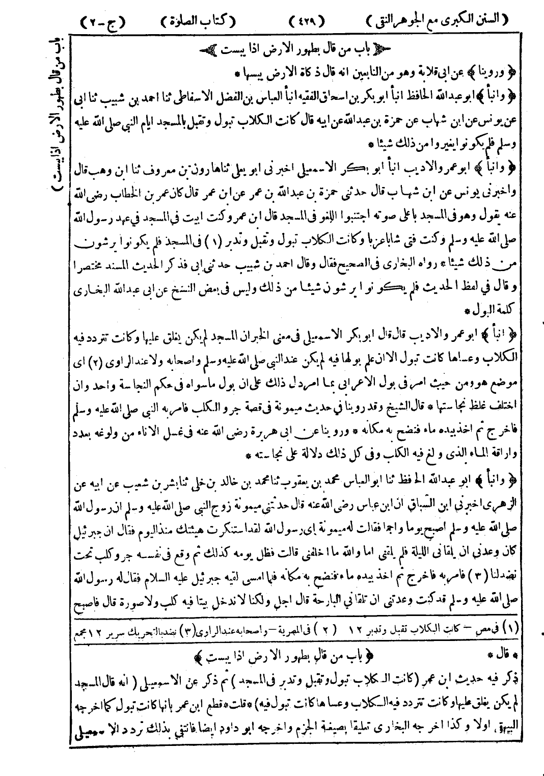 * قال * (باب من قال بطهور الارض إذا يبست) ذكر فيه حديث ابن عمر (كانت الكلاب تبول وتقبل وتدبر في المسجد) ثم ذكر عن الاسمعيلى (انه قال المسجد