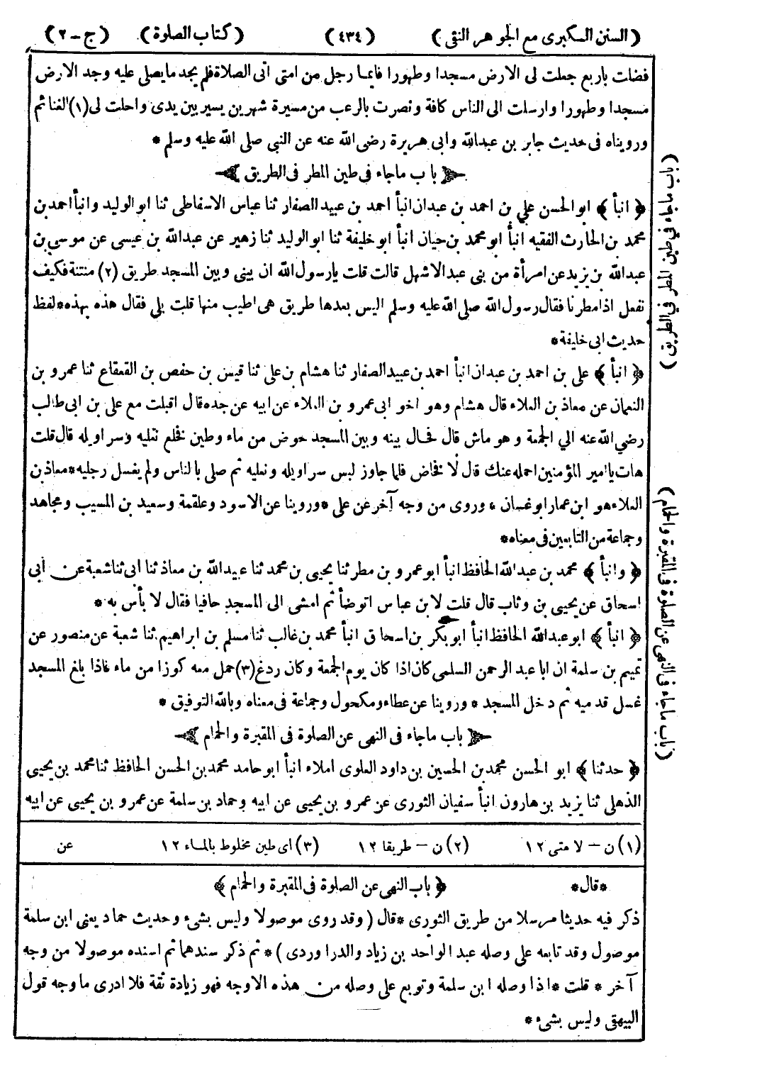 * قال * (باب النهى عن الصلوة في المقبرة والحمام) ذكر فيه حديثا مرسلا من طريق الثوري * قال (وقد روى موصولا وليس بشئ وحديث حماد يعنى ابن سلمة موصول وقد تابعه على وصله عبد الواحد بن زياد والدار وردى) * ثم ذكر سندهما ثم اسنده موصولا من وجه آخر * قلت * إذا وصله ابن سلمة وتوبع على وصله من هذه الا وجه فهو زيادة ثقة فلا ادرى ما وجه قول البيهقى وليس بشئ *