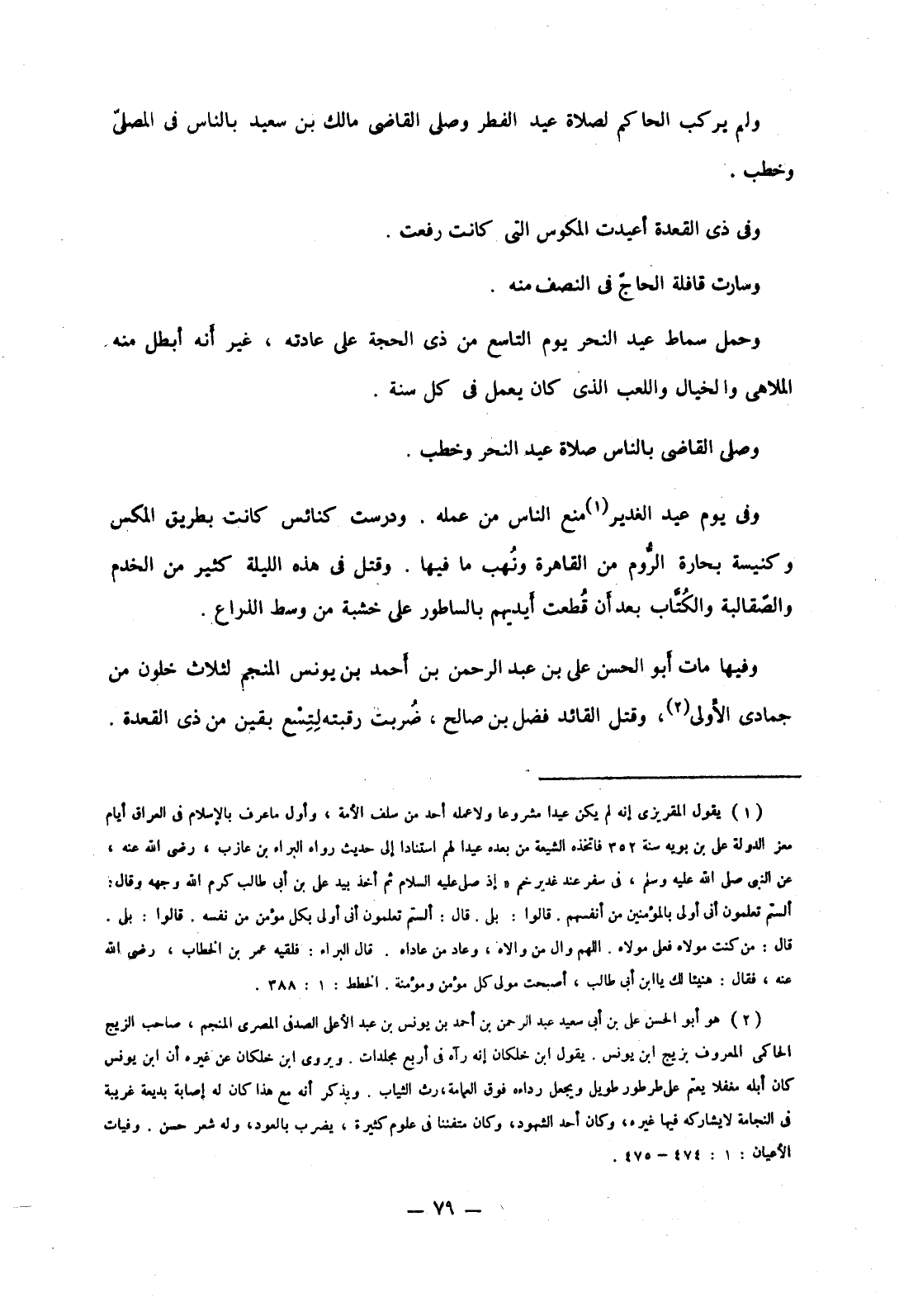 ولم يركب الحاكم لصلاة عيد الفطر وصلى القاضي مالك بن سعيد بالناس في المصلى وخطب.