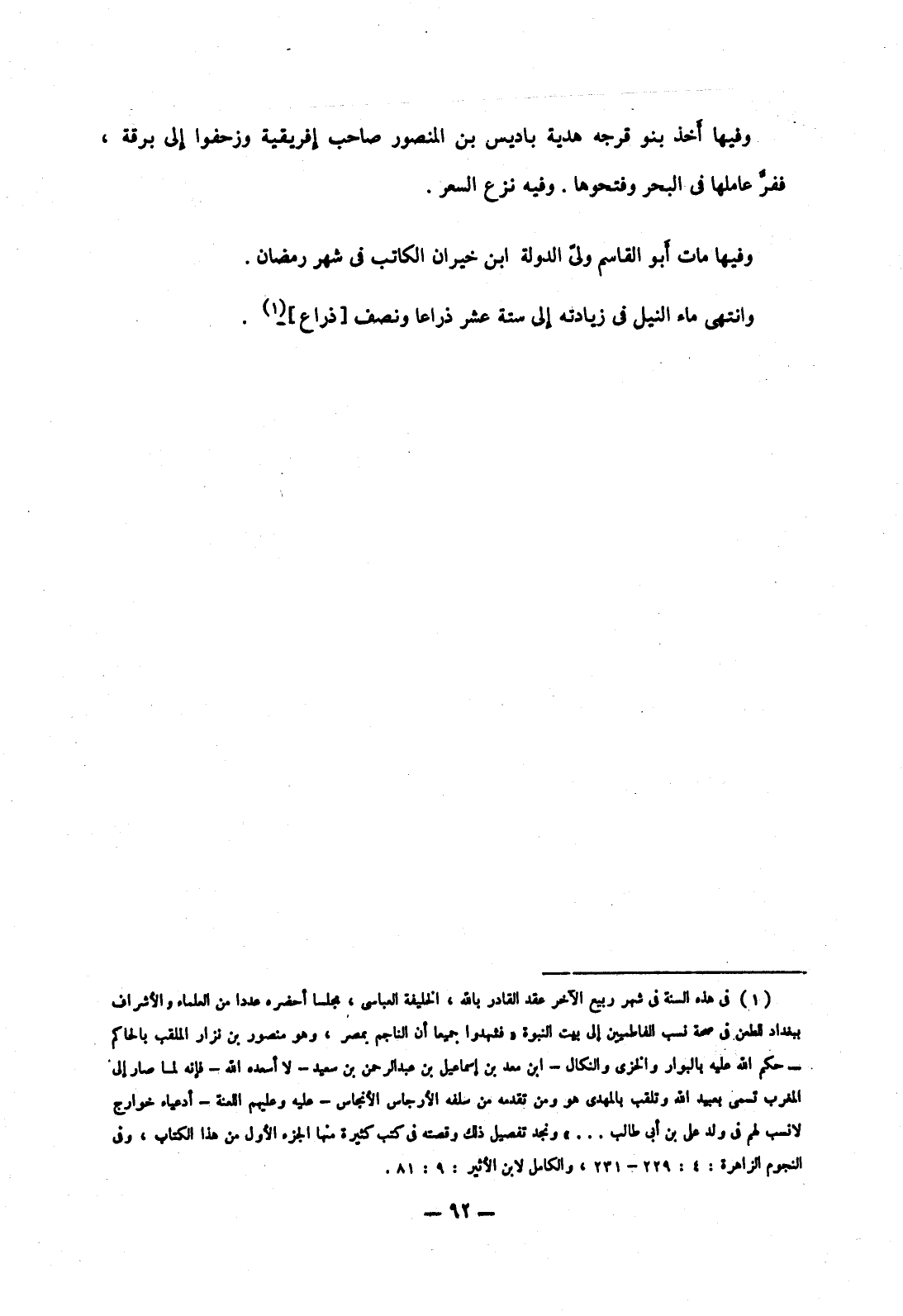 وانتهى ماء النيل في زيادته إلى ستة عشر ذراعا ونصف ذراع.