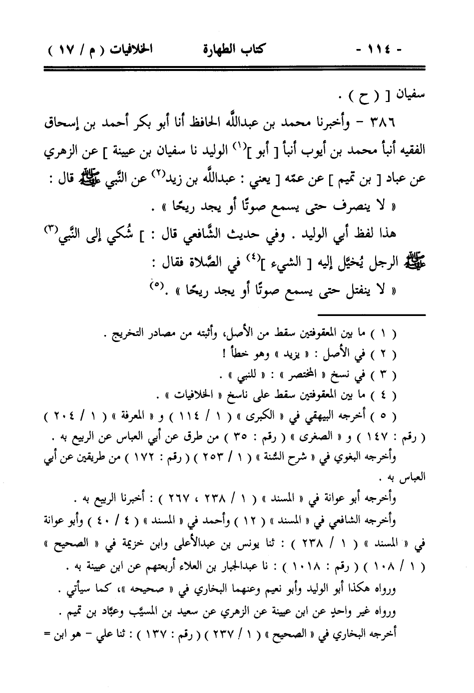 386- وأخبرنا محمد بن عبد الله الحافظ أنا أبو بكر أحمد بن إسحاق الفقيه أنبأ محمد بن أيوب أنبأ [أبو] الوليد نا سفيان بن عيينة] عن الزهري عن عباد [بن تميم] عن عمه [يعني: عبد الله بن زيد عن النبي صلى الله عليه وسلم قال: