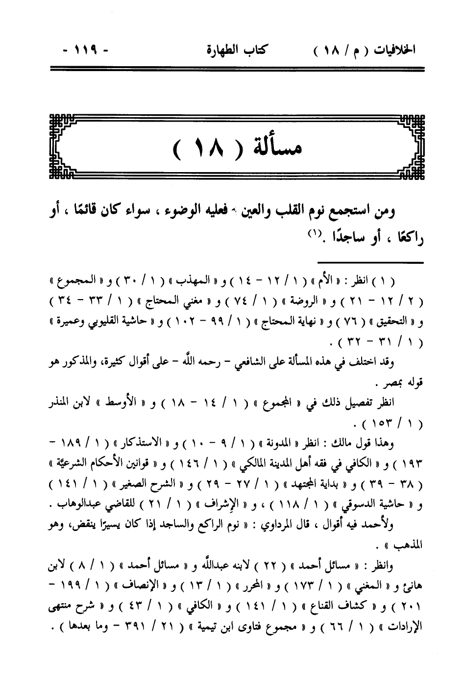 مسألة (18): ومن استجمع نوم القلب والعين فعليه الوضوء، سواء كان قائماً، أو راكعاً، أو ساجداً.