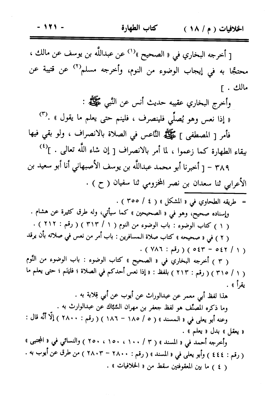 فأمر [المصطفى] صلى الله عليه وسلم الناعس في الصلاة بالانصراف، ولو بقي فيها ببقاء الطهارة كما زعموا، لما أمر بالانصراف [إن شاء الله تعالى].