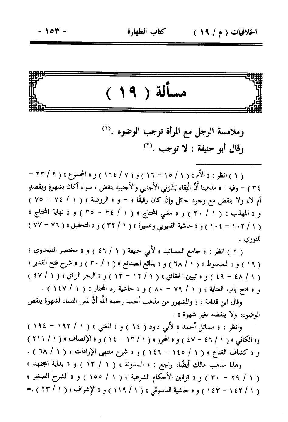 مسألة (19): وملامسة الرجل مع المرأة توجب الوضوء.