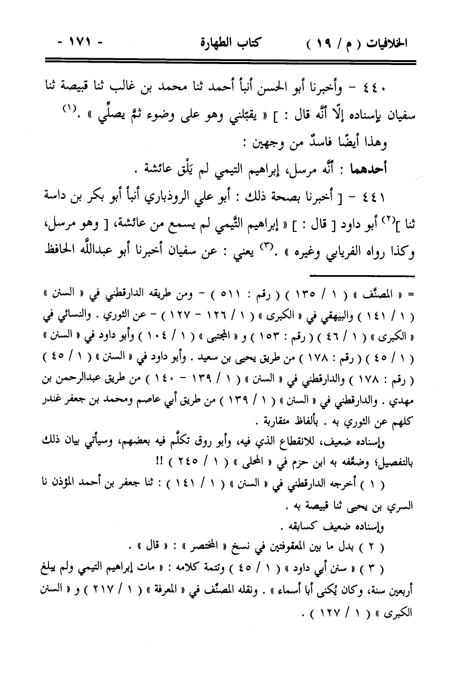 440- وأخبرنا أبو الحسن أنبأ أحمد ثنا محمد بن غالب ثنا قبيصة ثنا سفيان بإسناده إلا أنه قال:] ((يقبلني وهو على وضوء ثم يصلي)).