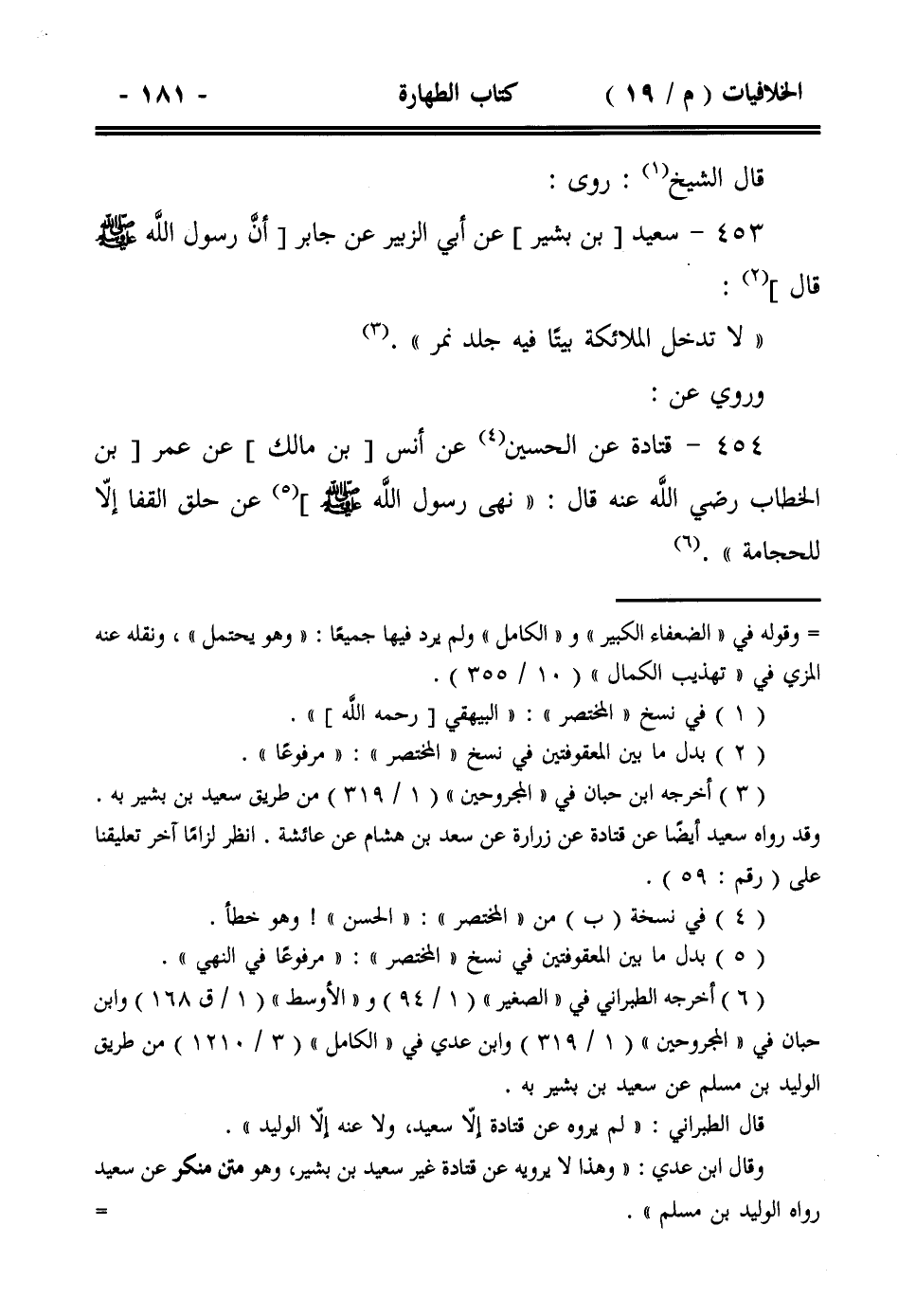 453- سعيد [بن بشير] عن أبي الزبير عن جابر [أن رسول الله صلى الله عليه وسلم قال]:
