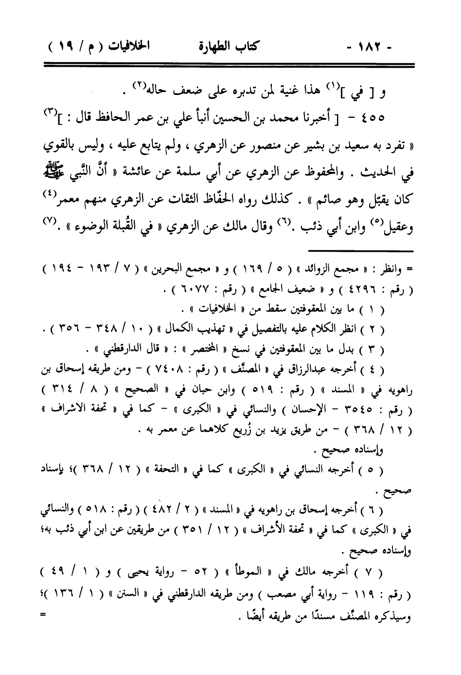 455- [أخبرنا محمد بن الحسين أنبأ علي بن عمر الحافظ قال:] ((تفرد به سعيد بن بشير عن منصور عن الزهري، ولم يتابع عليه، وليس بالقوي في الحديث. والمحفوظ عن الزهري عن أبي سلمة عن عائشة ((أن النبي صلى الله عليه وسلم كان يقبل وهو صائم)). كذلك رواه الحفاظ الثقات عن الزهري منهم معمر وعقيل وابن أبي ذئب. وقال مالك عن الزهري ((في القبلة الوضوء)).