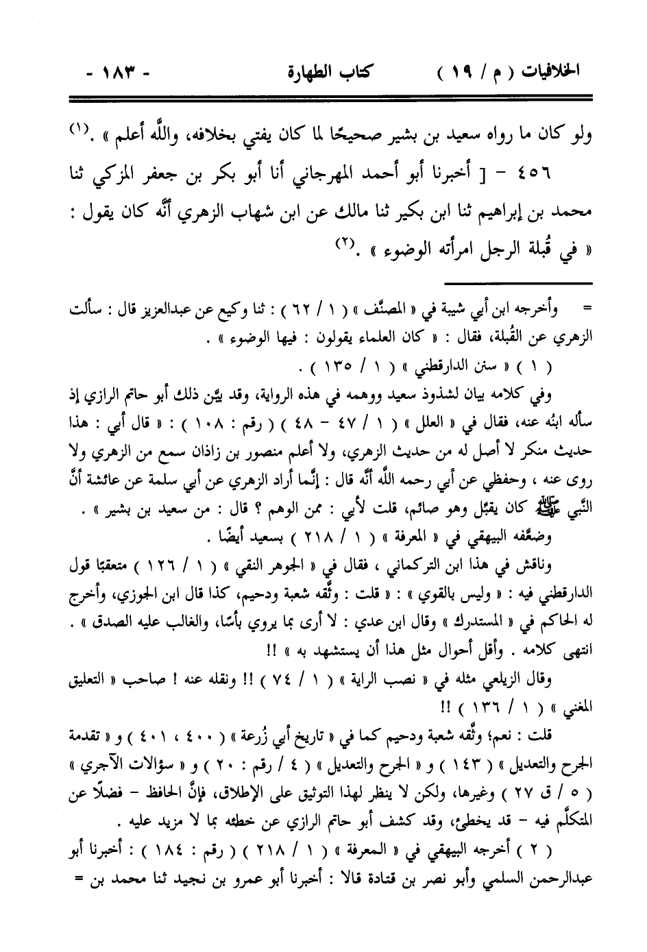 456- [أخبرنا أبو أحمد المهرجاني أنا أبو بكر بن جعفر المزكي ثنا محمد بن إبراهيم ثنا ابن بكير ثنا مالك عن ابن شهاب الزهري أنه كان يقول: ((في قبلة الرجل امرأته الوضوء)).