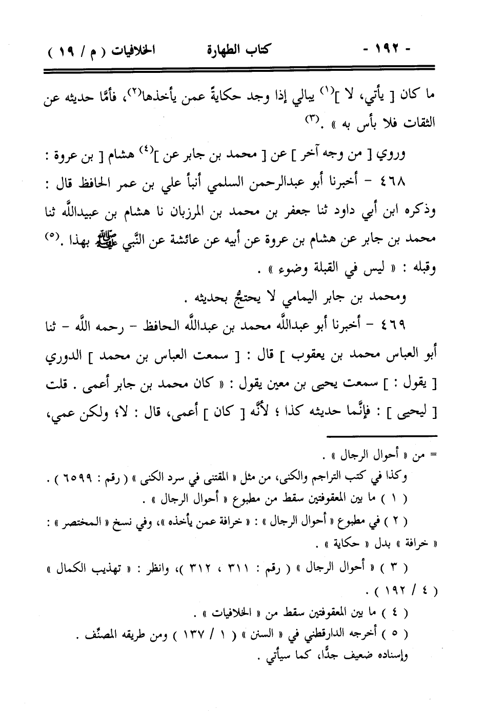 468- أخبرنا أبو عبد الرحمن السلمي أنبأ علي بن عمر الحافظ قال: وذكره ابن أبي داود ثنا جعفر بن محمد بن المرزبان نا هشام بن عبيد الله ثنا محمد بن جابر عن هشام بن عروة عن أبيه عن عائشة عن النبي صلى الله عليه وسلم بهذا. وقبله: ((ليس في القبلة وضوء)).