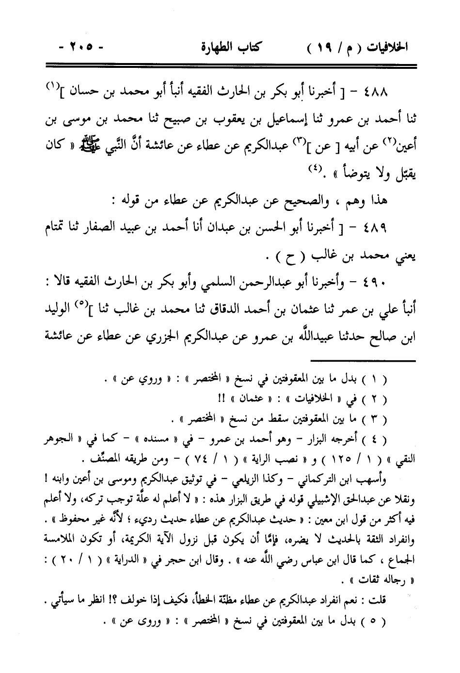 490- وأخبرنا أبو عبد الرحمن السلمي وأبو بكر بن الحارث الفقيه قالا: أنبأ علي بن عمر ثنا عثمان بن أحمد الدقاق ثنا محمد بن غالب ثنا] الوليد ابن صالح حدثنا عبيد الله بن عمرو عن عبد الكريم الجزري عن عطاء عن عائشة