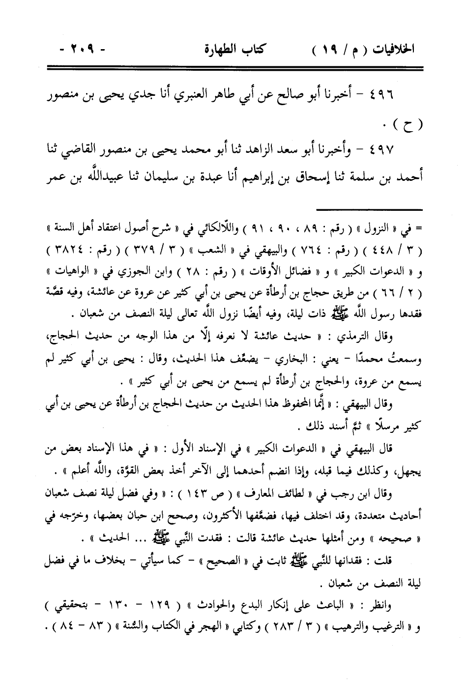 497- وأخبرنا أبو سعد الزاهد ثنا أبو محمد يحيى بن منصور القاضي ثنا أحمد بن سلمة ثنا إسحاق بن إبراهيم أنا عبدة بن سليمان ثنا عبيد الله بن عمر