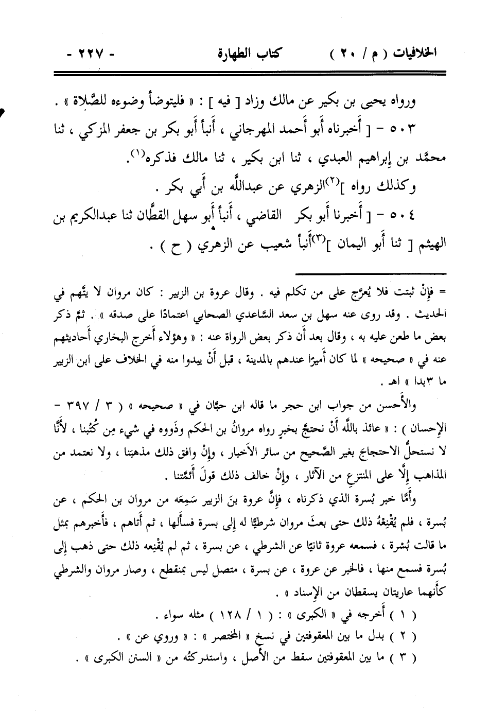504- [أخبرنا أبو بكر القاضي، أنبأ أبو سهل القطان ثنا عبد الكريم بن الهيثم [ثنا أبو اليمان] أنبأ شعيب عن الزهري (ح).