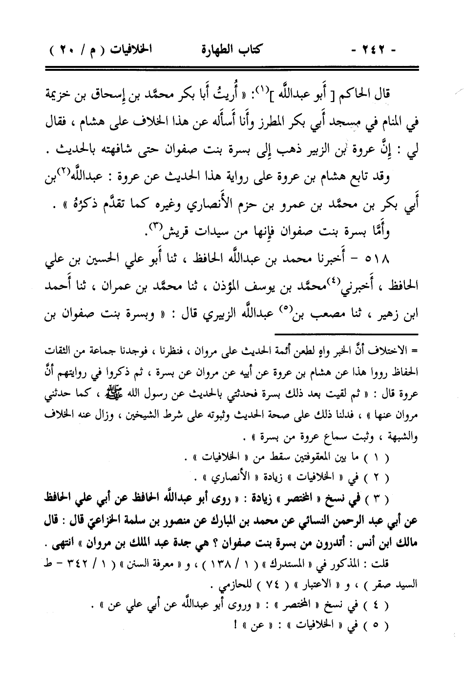 قال الحاكم [أبو عبد الله]: ((أريت أبا بكر محمد بن إسحاق بن خزيمة في المنام في مسجد أبي بكر المطرز وأنا أسأله عن هذا الخلاف على هشام، فقال لي: إن عروة بن الزبير ذهب إلى بسرة بنت صفوان حتى شافهته بالحديث.