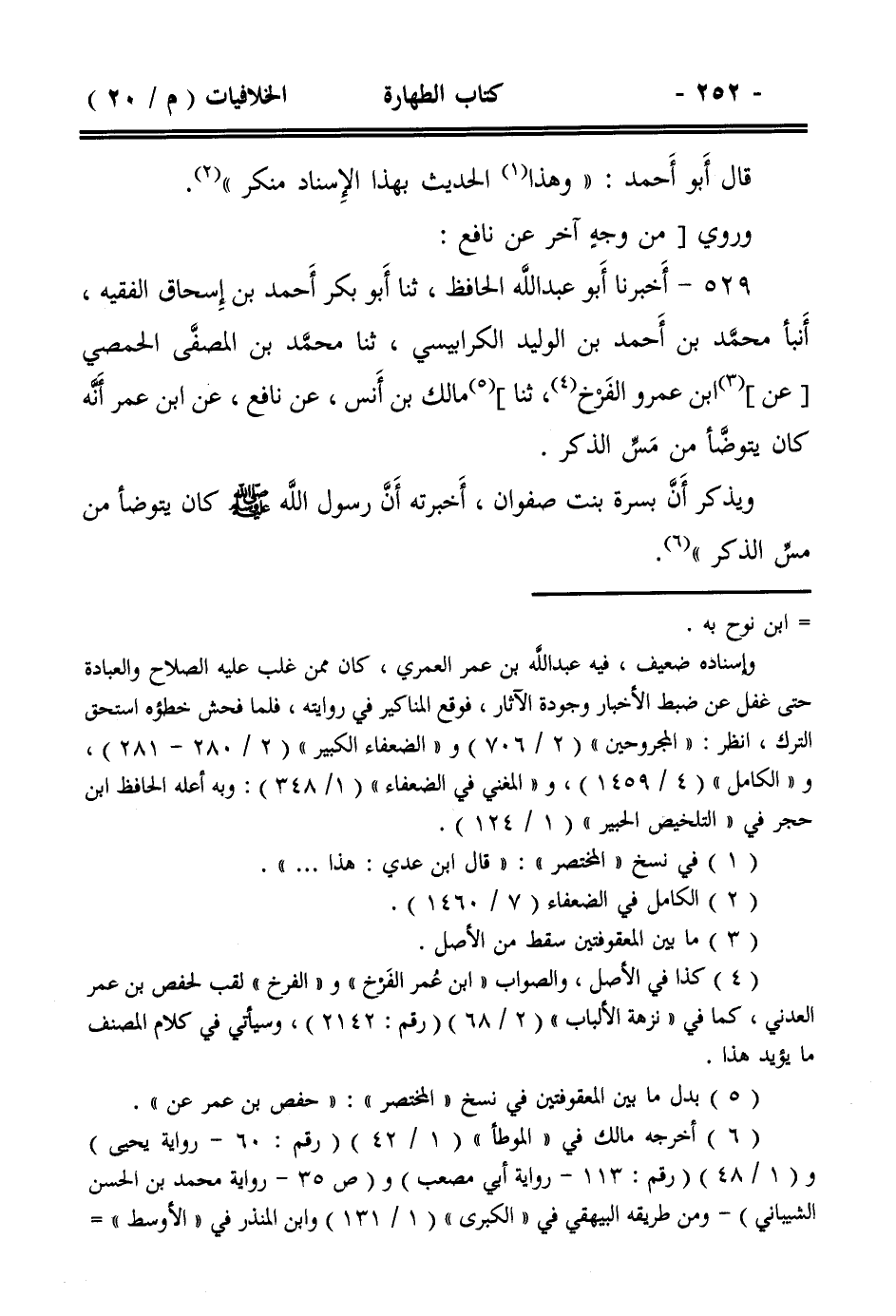 529- أخبرنا أبو عبد الله الحافظ، ثنا أبو بكر أحمد بن إسحاق الفقيه، أنبأ محمد بن أحمد بن الوليد الكرابيسي، ثنا محمد بن المصفى الحمصي [عن] ابن عمرو الفرخ، ثنا] مالك بن أنس، عن نافع، عن ابن عمر أنه كان يتوضأ من مس الذكر.