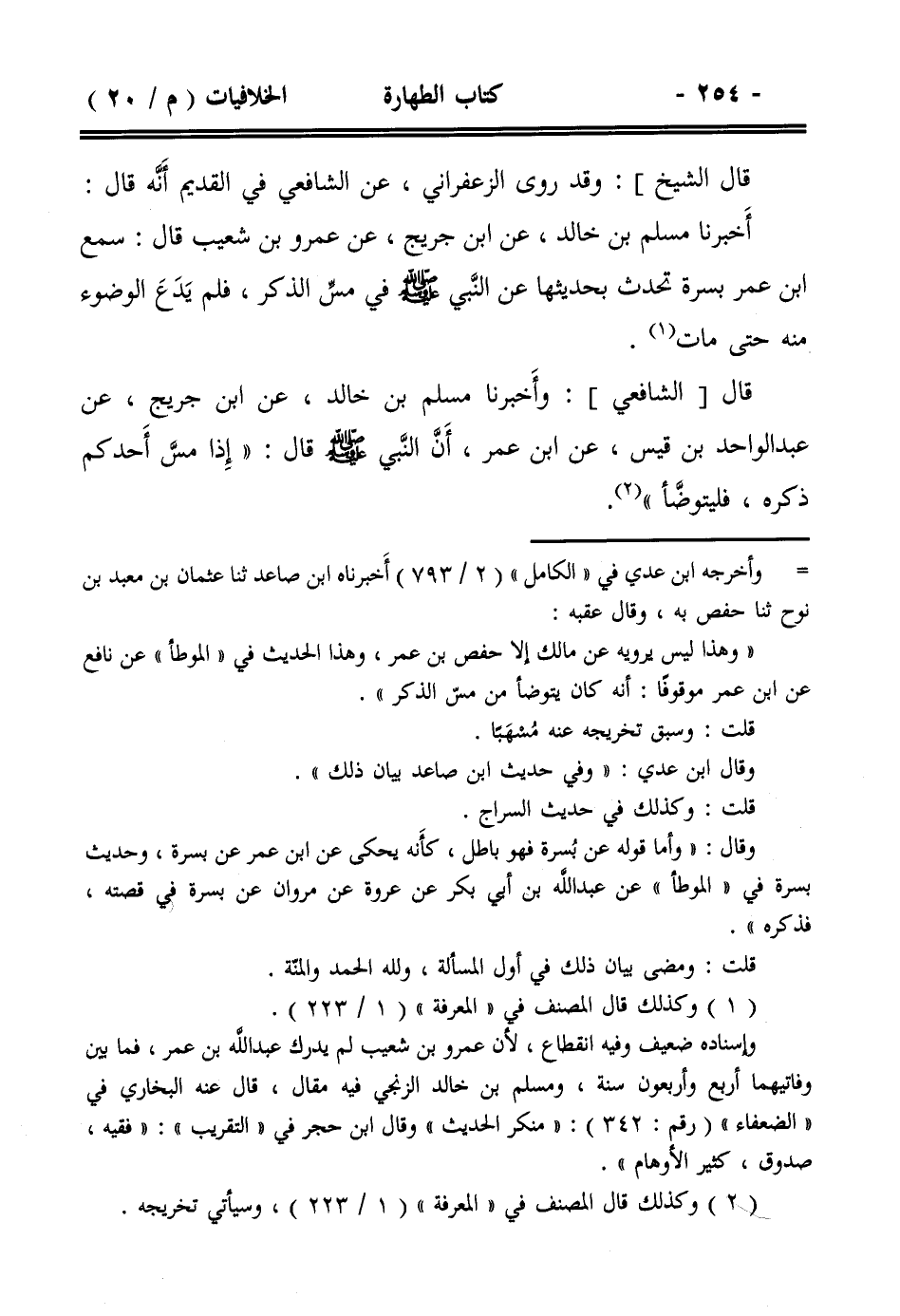 قال [الشافعي]: وأخبرنا مسلم بن خالد، عن ابن جريج، عن عبد الواحد بن قيس، عن ابن عمر، أن النبي صلى الله عليه وسلم قال: ((إذا مس أحدكم ذكره، فليتوضأ)).