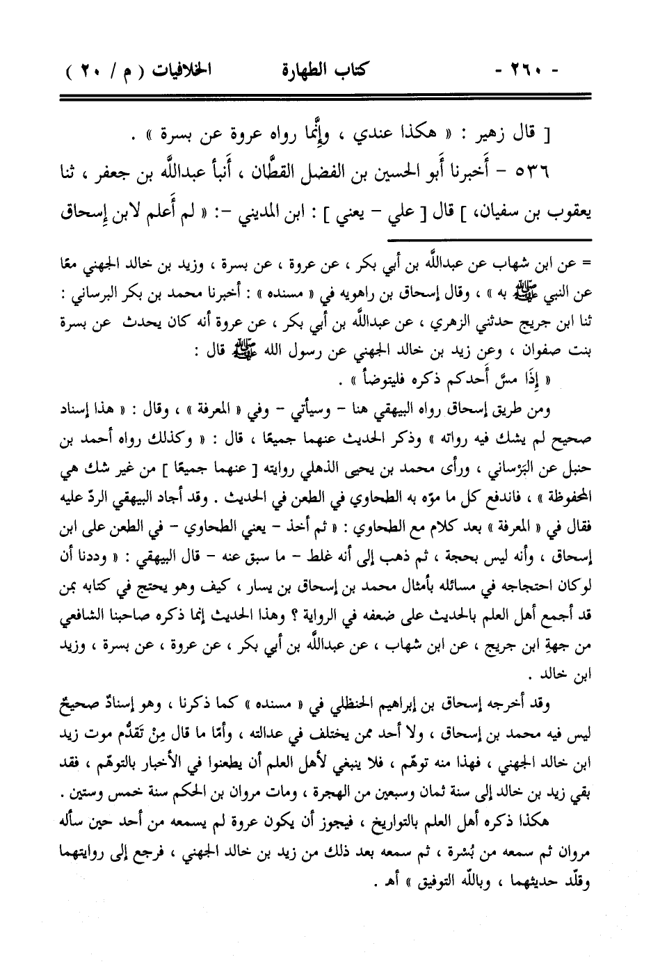 [قال زهير: ((هكذا عندي، وإنما رواه عروة عن بسرة)).